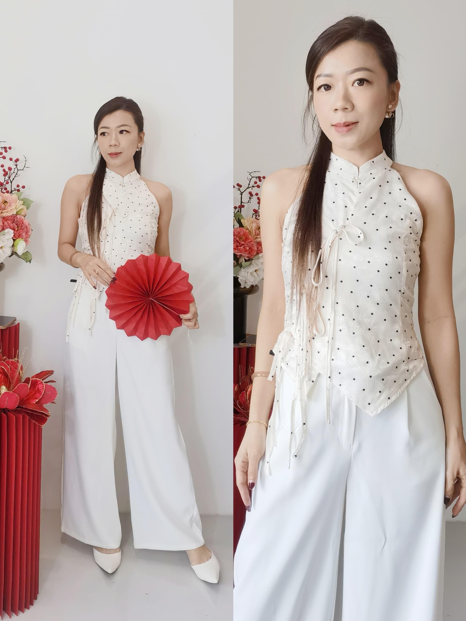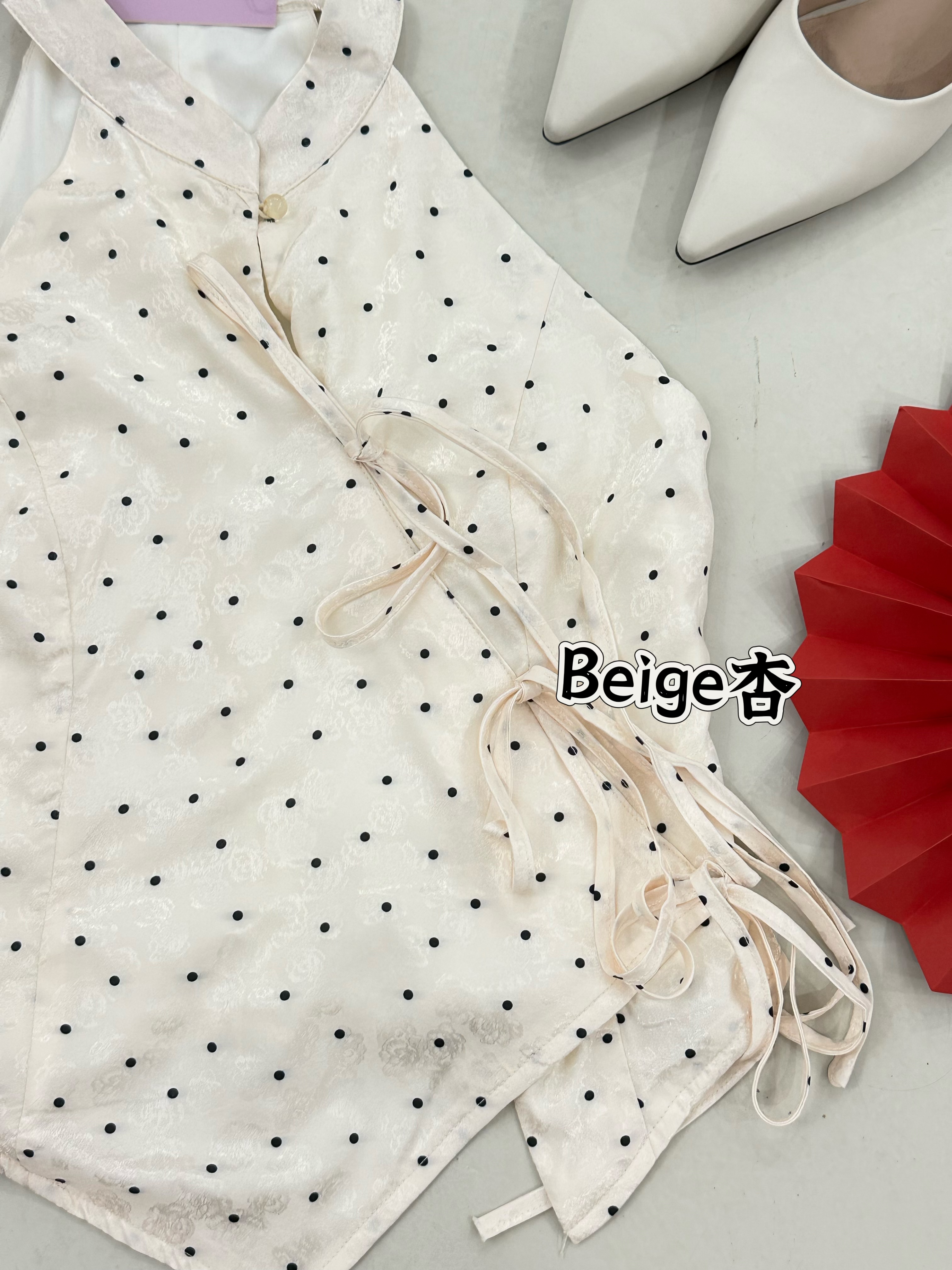 新品推荐✨🧧14627 Satin Cut In Blouse法式波点暗花缎面上衣 暗花缎面面料 、无弹性 、有里布、显瘦cutting 超美😍 颜色:米白SML S SIZE 胸围 32寸 腰25-26寸 长50cm M SIZE 胸围 34寸 腰27-28寸 长50cm L SIZE 胸围 36寸 腰29-30寸 长51cm 博主平时是S,此款穿S 刚好舒服,供大家参考。