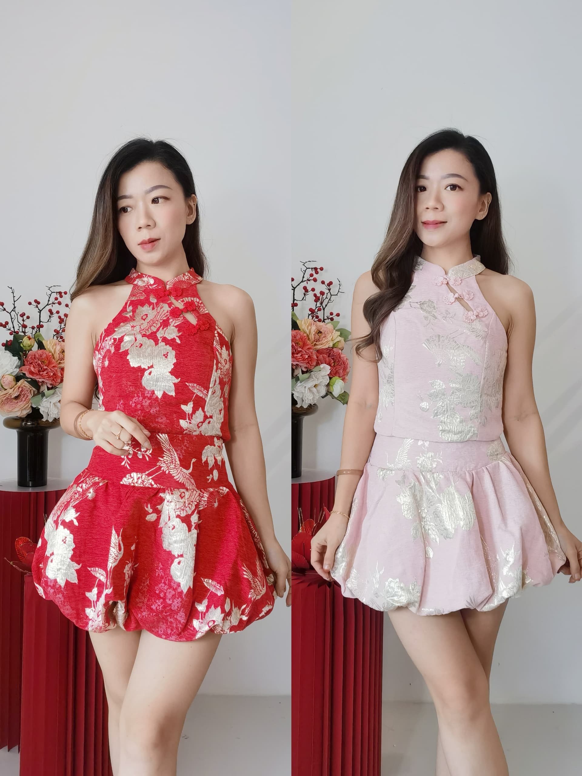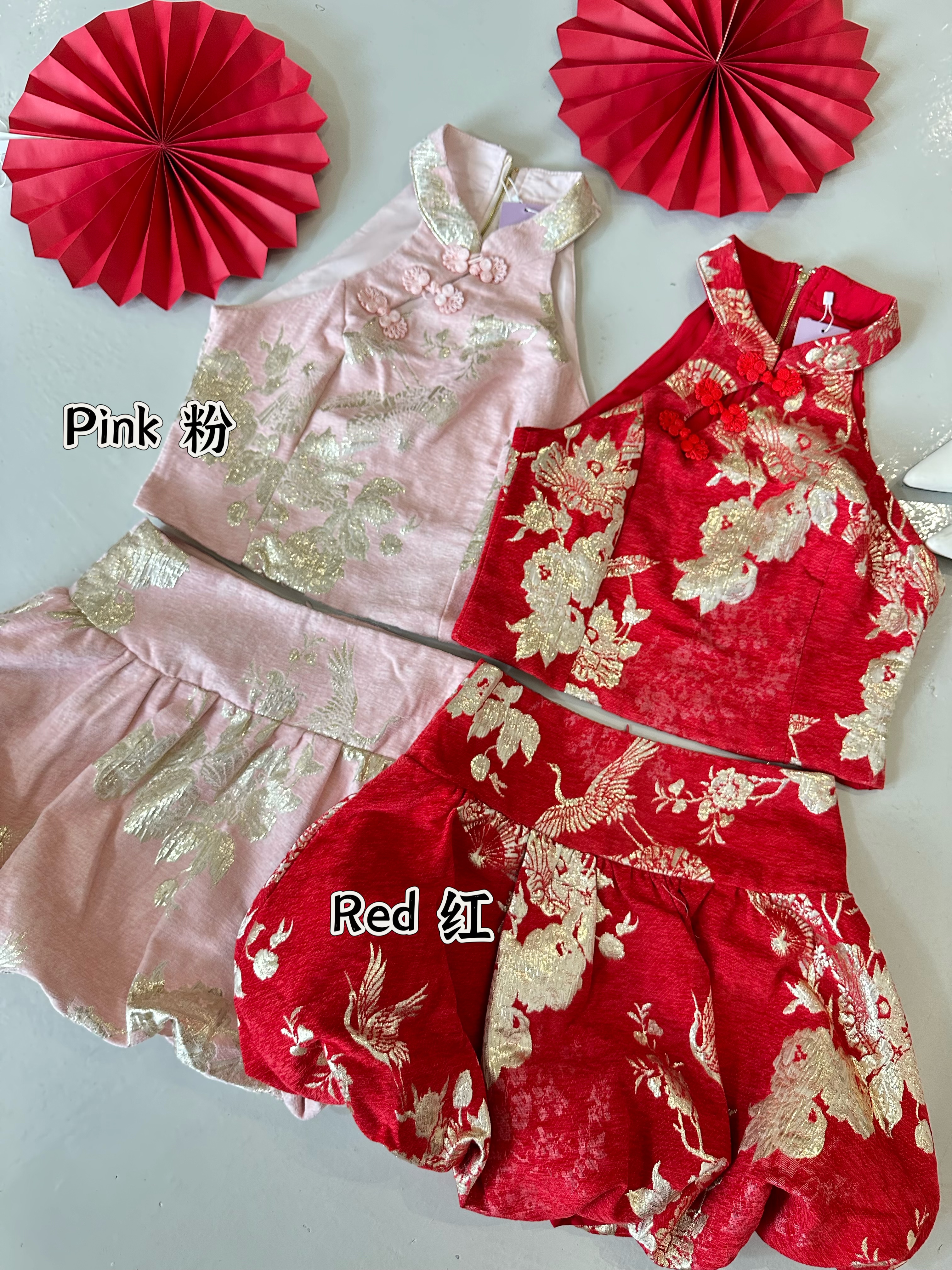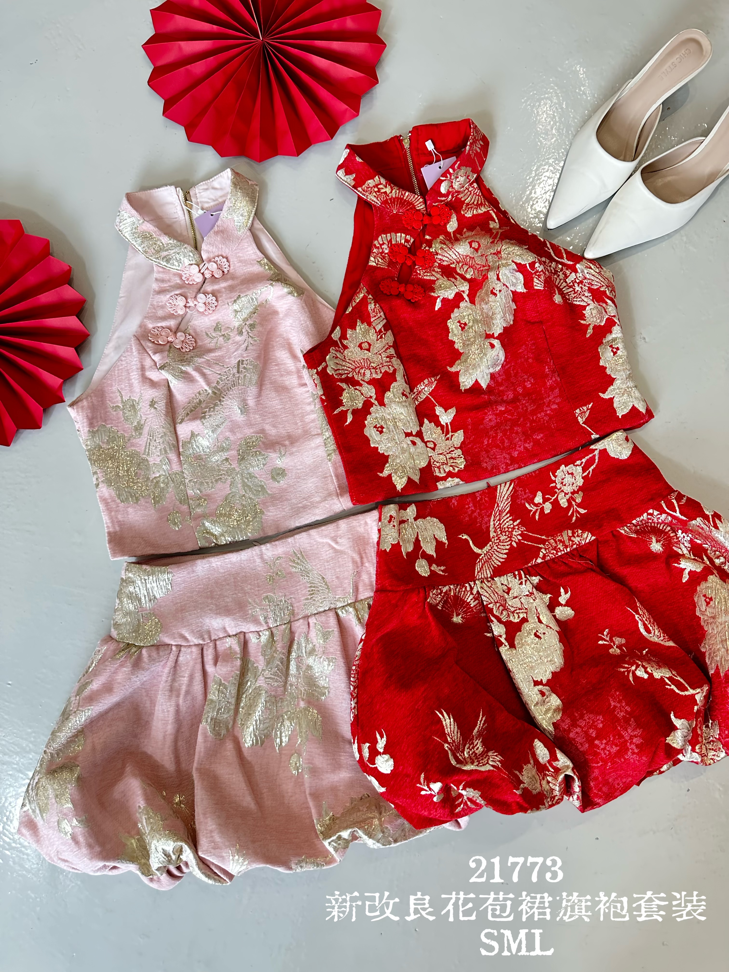 CNY新款✨🪭 21773新改良花苞旗袍套装✨ 颜色:红金、粉金 2件式 上衣+裤裙、 舒适时装面料、不刺痒、无弹性、削肩设计更显瘦款。 S SIZE 胸围 32寸 长44cm 腰 25-26寸 长34cm M SIZE 胸围 34寸 长44cm 腰 27-28寸 长36cm L SIZE 胸围 36寸 长46cm 腰 29-30寸 长38cm 根据平时的size下单。 博主163cm/52kg 平时穿S码 , 此款式穿S舒服。 供大家参考