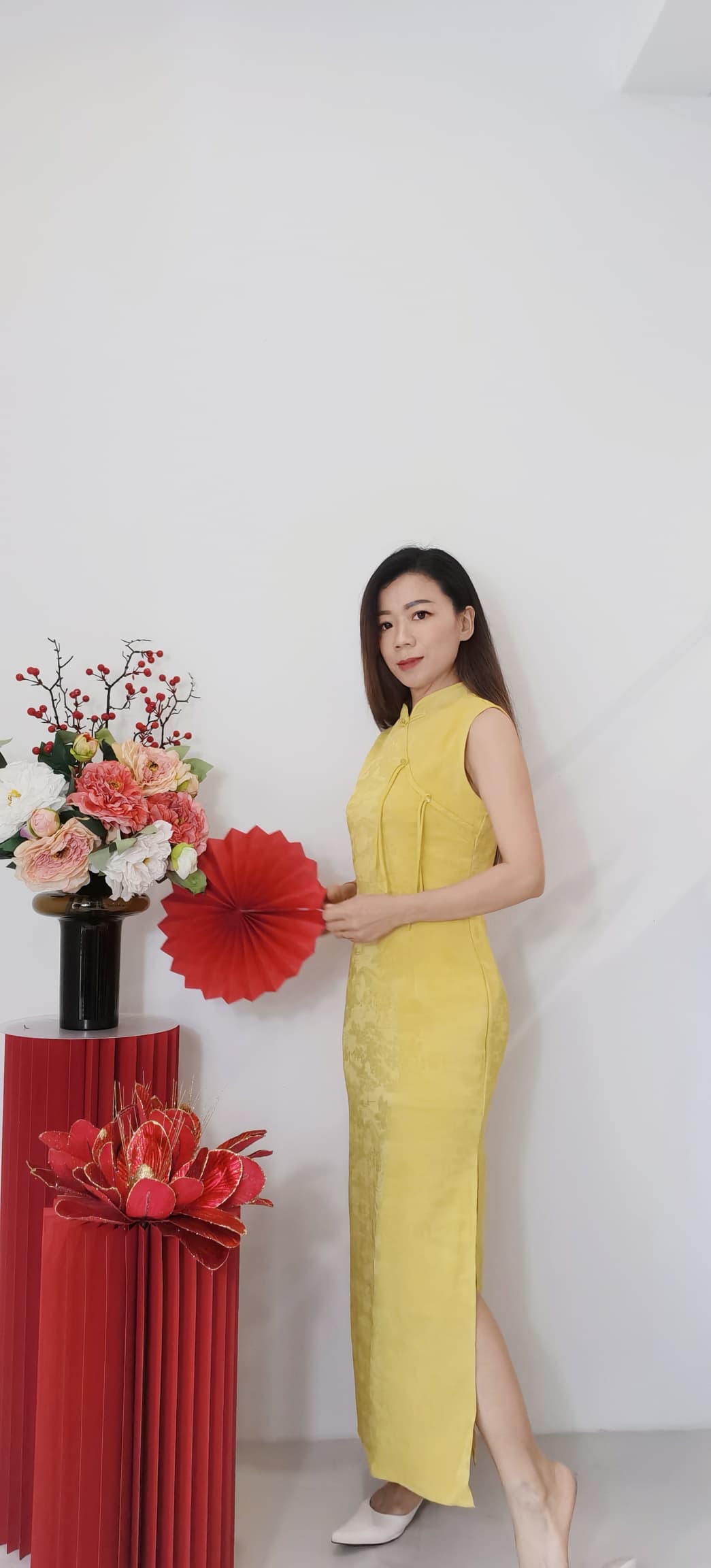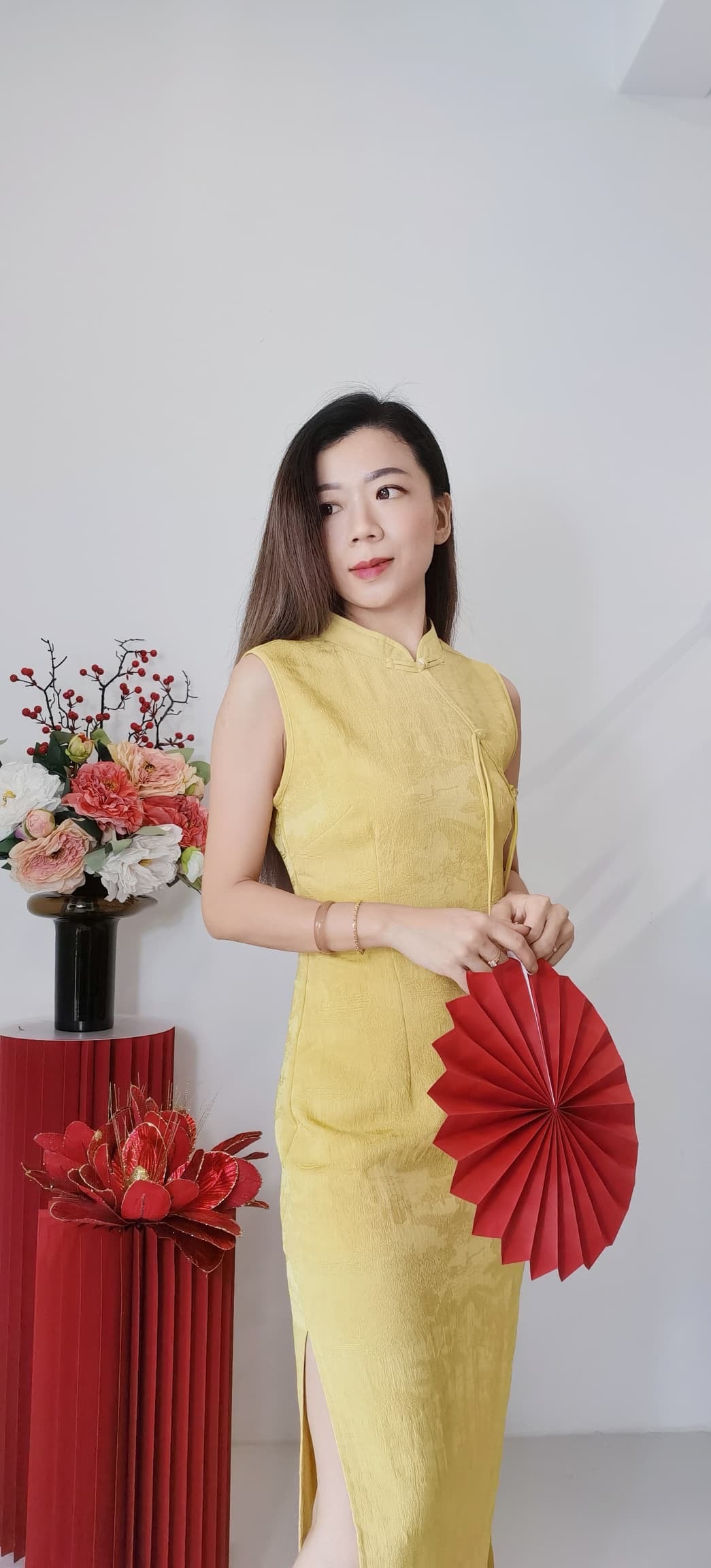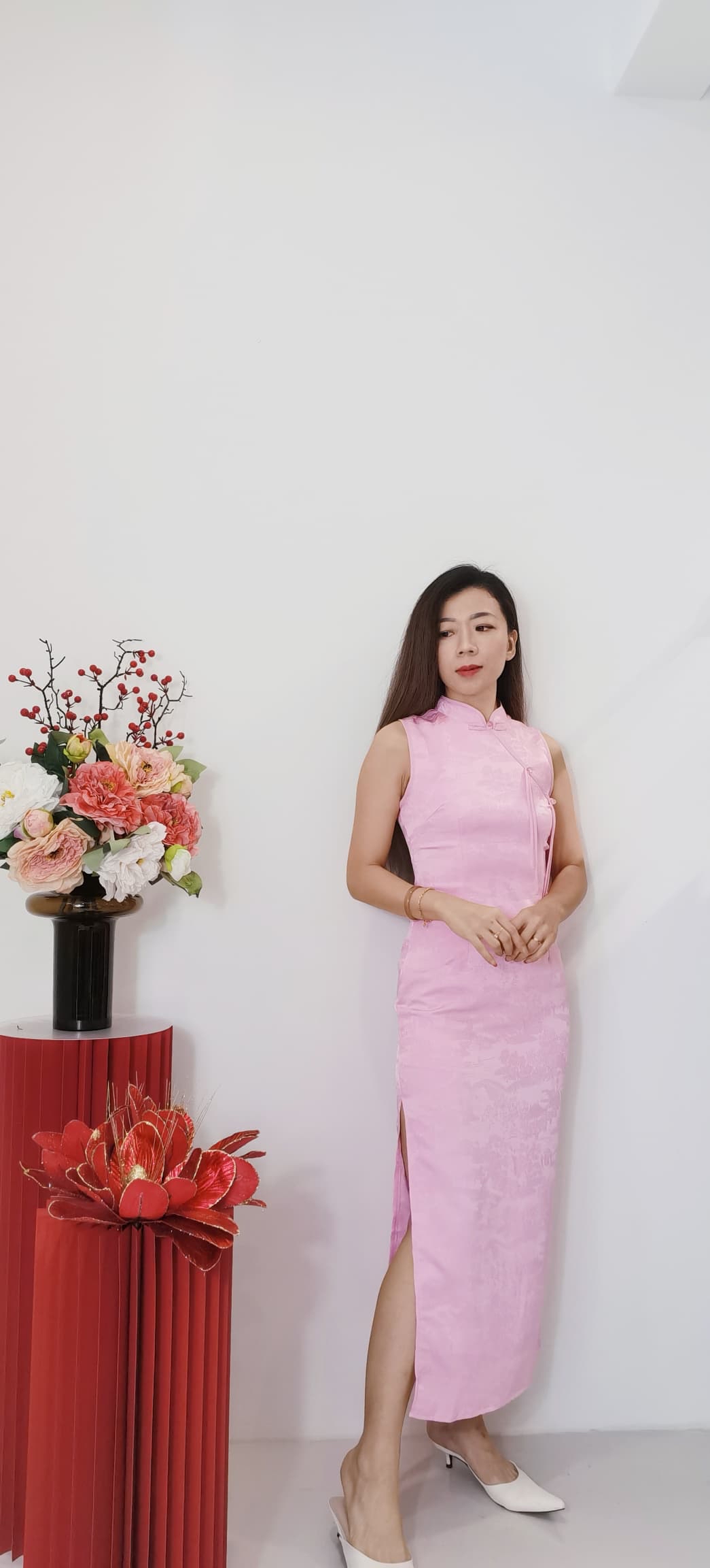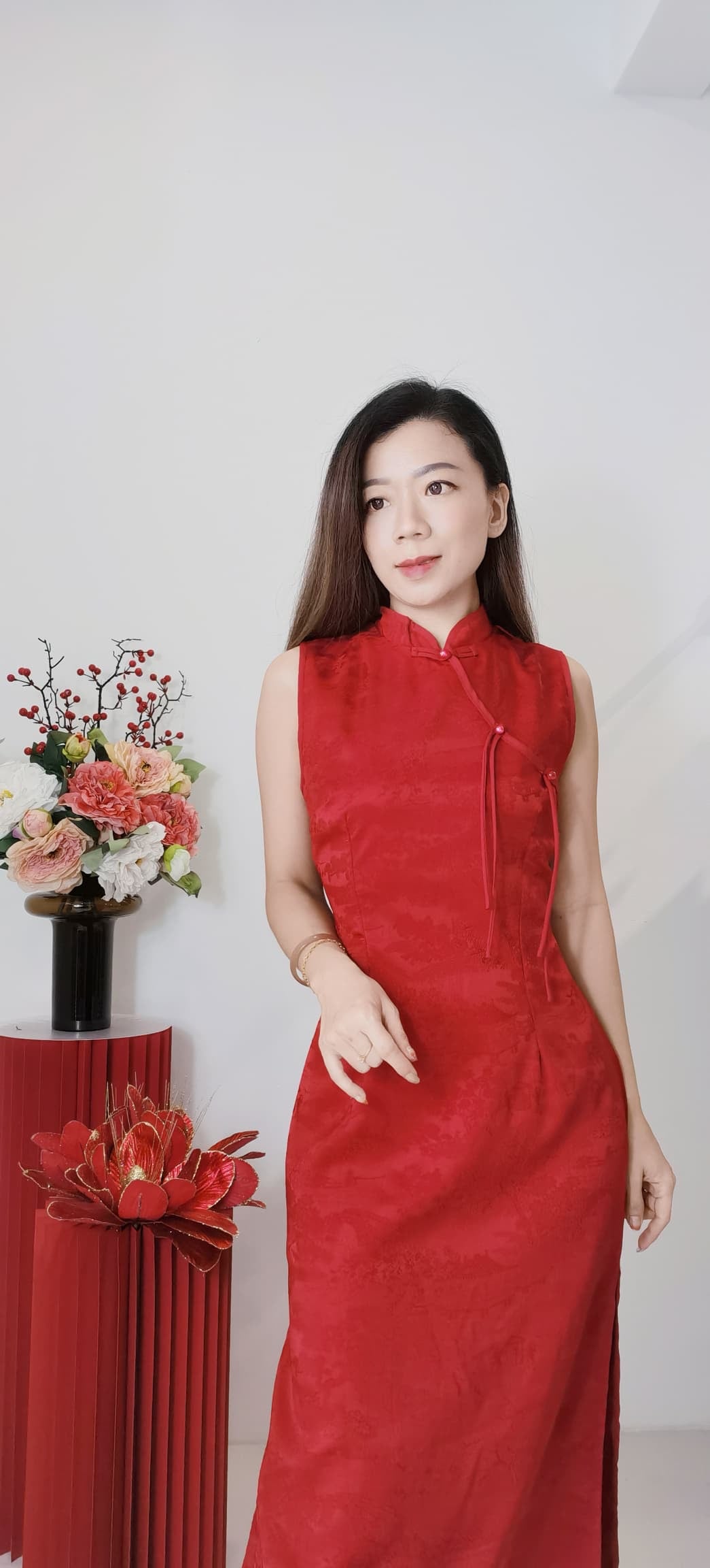 Code : 22891 CNY 新中式两侧开叉款旗袍 ✨ 很好的暗花面料|有里布|微弹性|修身显瘦|真优雅气质 ❤️❤️ S size : 胸围 80-84cm / 腰围 66-68cm / 臀部90cm / 长124cm M size : 胸围 86-90cm / 腰围 70-74cm / 臀部98cm / 长125cm L size : 胸围 92-96cm / 腰围 76-80cm / 臀部106cm / 长126cm 博主穿S 刚好 供参考。