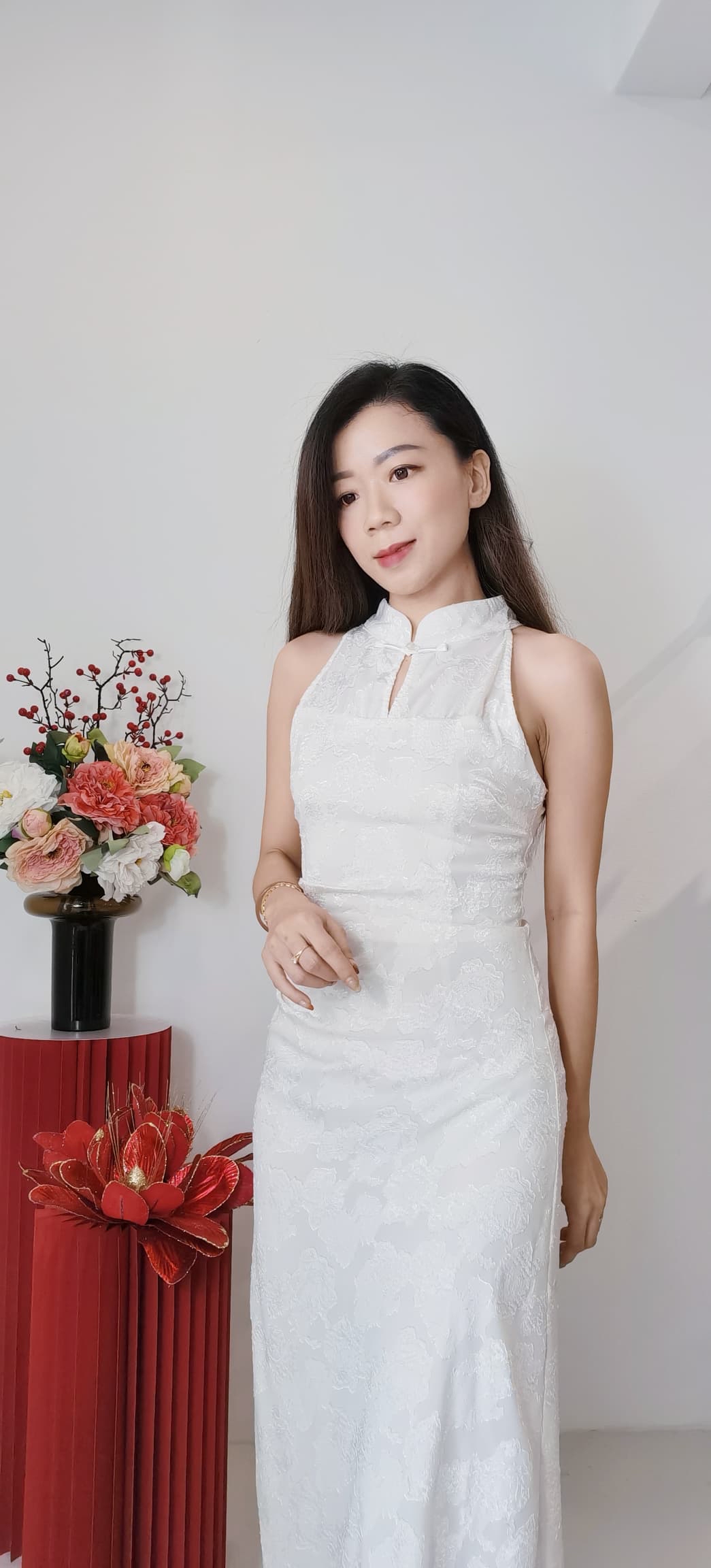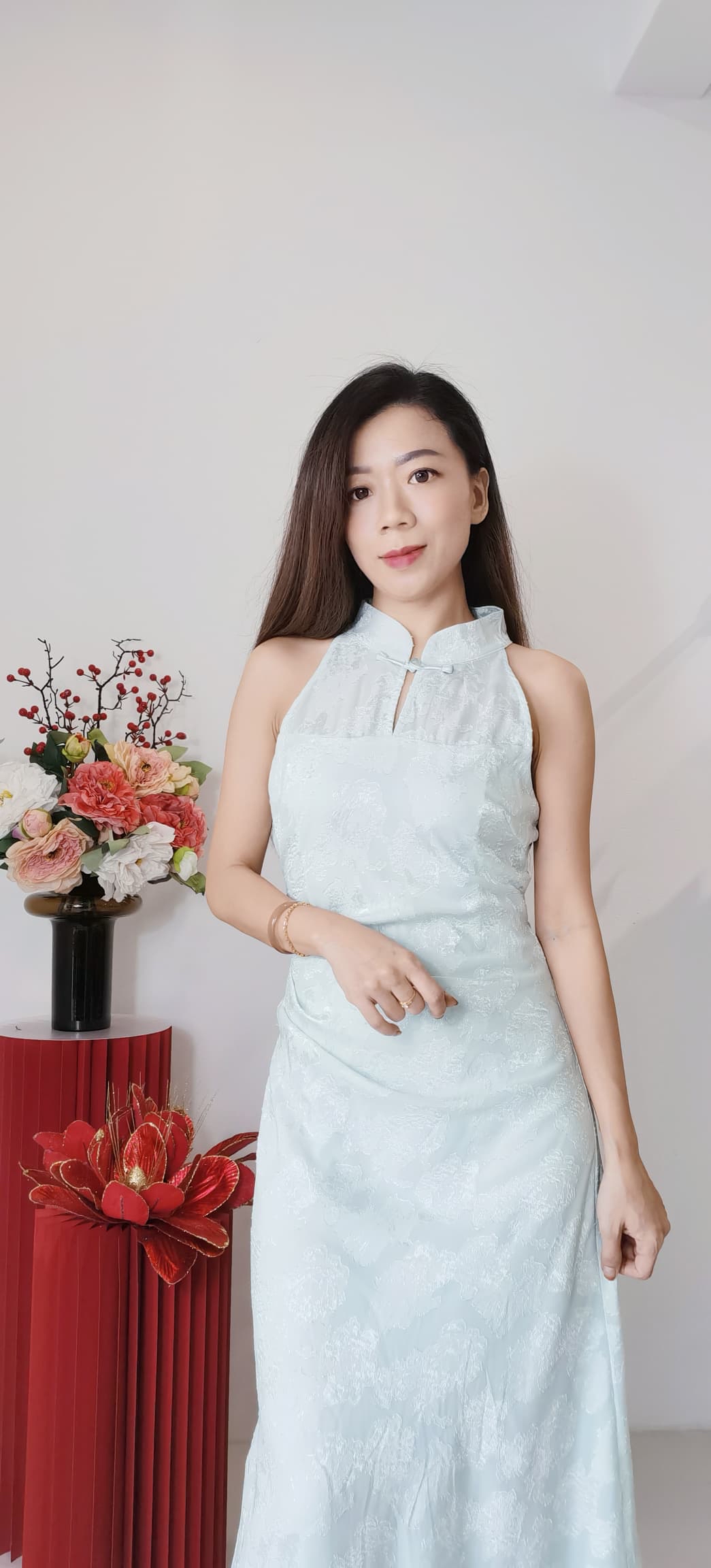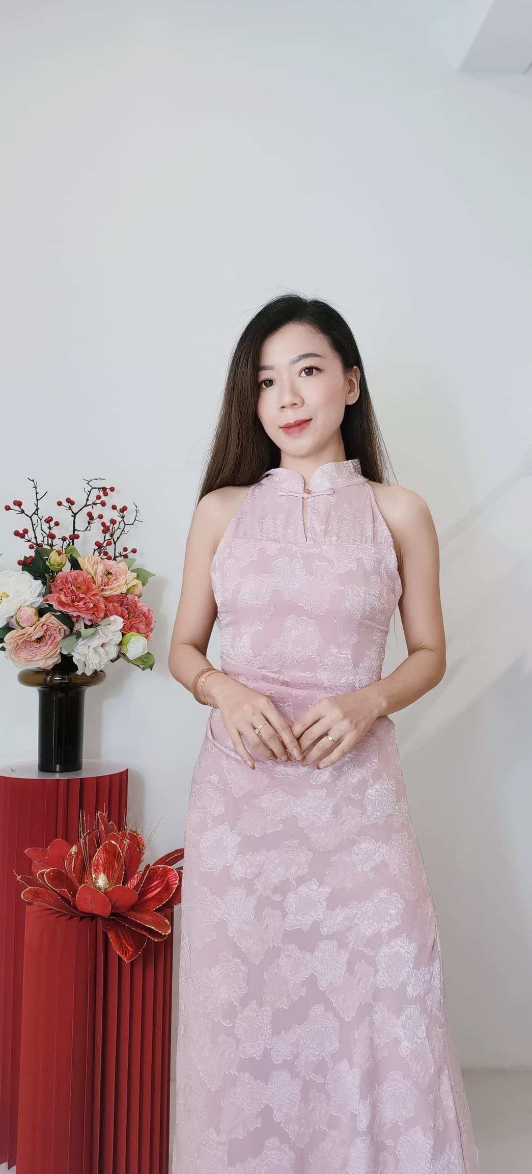 22910 CNY新中式长裙旗袍 ✨ 清秀暗花面料|有里布不透|有弹性|修身显瘦|优雅气质款❤️❤️ 颜色 : 米白|粉|浅绿 S size : 胸围 82-84cm / 腰围 66-68cm / 臀部92cm / 长151cm M size : 胸围 86-90cm / 腰围 70-74cm / 臀部98cm / 长152cm L size : 胸围 92-96cm / 腰围 76-80cm / 臀部100cm / 长153cm 根据平时的size下单。 博主163cm/52kg 平时穿S码 , 此款式穿S舒服。 供大家参考
