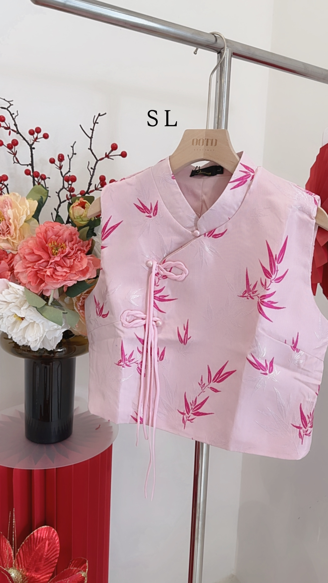 新年时装刺绣面料、双层、无弹、后面隐形拉链。 S SIZE 胸围 82cm 长40cm L SIZE 胸围 90cm 长41cm
