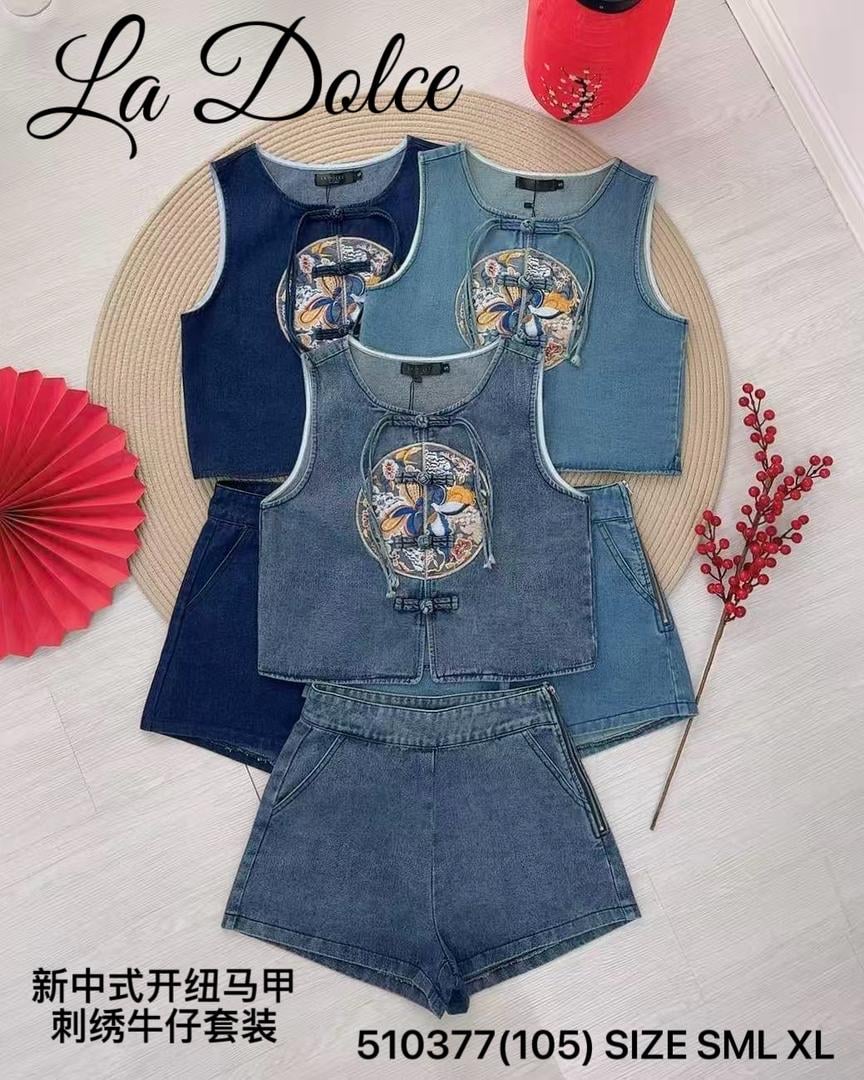 🧧新品推荐✨ CNY 高定系列刺绣工艺牛仔套装 CODE🔍510377 COLOUR : 深蓝/ 中蓝/浅蓝 牛仔弹力布料 微弹性 刺绣工艺盘口款设计 真减龄 根据平时的SIZE下单即可。 M SIZE 胸围 88-94cm 长46cm 腰围 70cm 臀部96cm 长33cm L SIZE 胸围 96-100cm 长46cm 腰围78cm 臀部100cm 长33cm