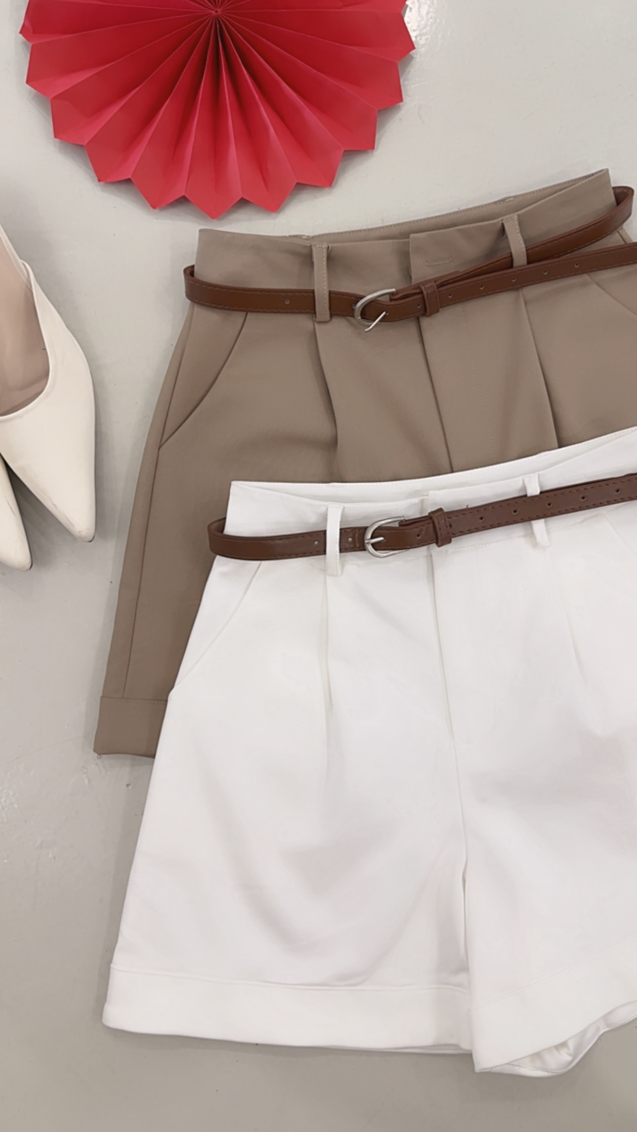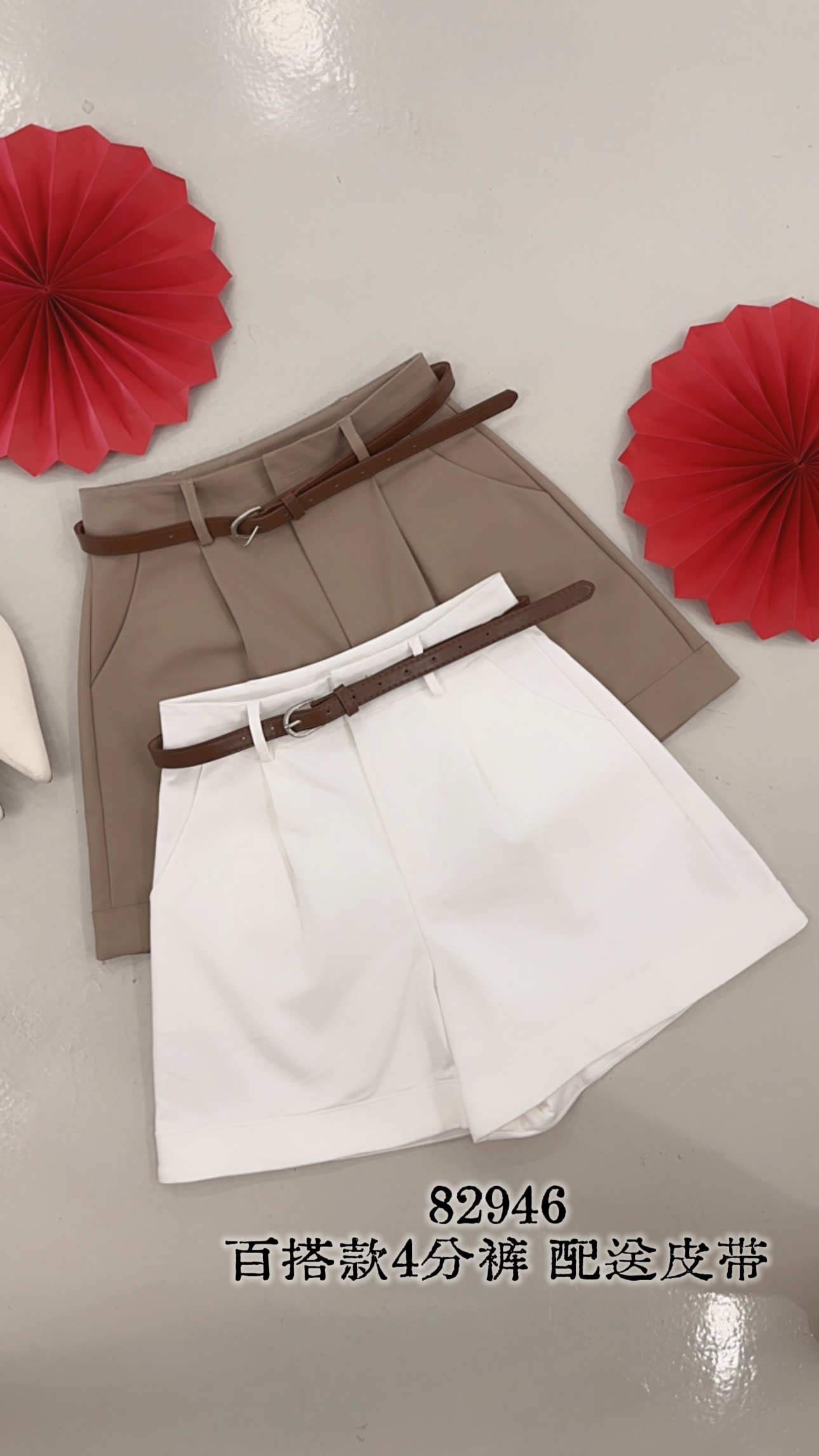 新品推荐✨ 82946 百搭款4分裤 配送 腰带 颜色: 咖啡、白 (不透有层里布) 锦棉弹力布料、有弹性、4分长度、配送腰带! S SIZE 腰围 24-25寸 臀部 92cm 长40cm M SIZE 腰围 27-28寸 臀部 98cm 长42cm L SIZE 腰围 29-30寸 臀部 104cm 长44cm 根据平时的尺寸下单。 博主穿S 舒服的 供大家参考。☺️