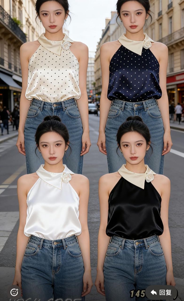 新品推荐✨🧧14505 法式浪漫缎面削肩上衣 satin缎面面料、无弹性 、有里布、领子别致 搭配香奈儿花胸针😍 宽松舒服又气质 绝美! 颜色:黑、白、波点米白、波点黑 S SIZE 胸围 32-34寸 长52cm M SIZE 胸围 34-36寸 长53cm L SIZE 胸围 36-38寸 长55cm 博主平时是S,此款穿S宽松舒服的,供大家参考。