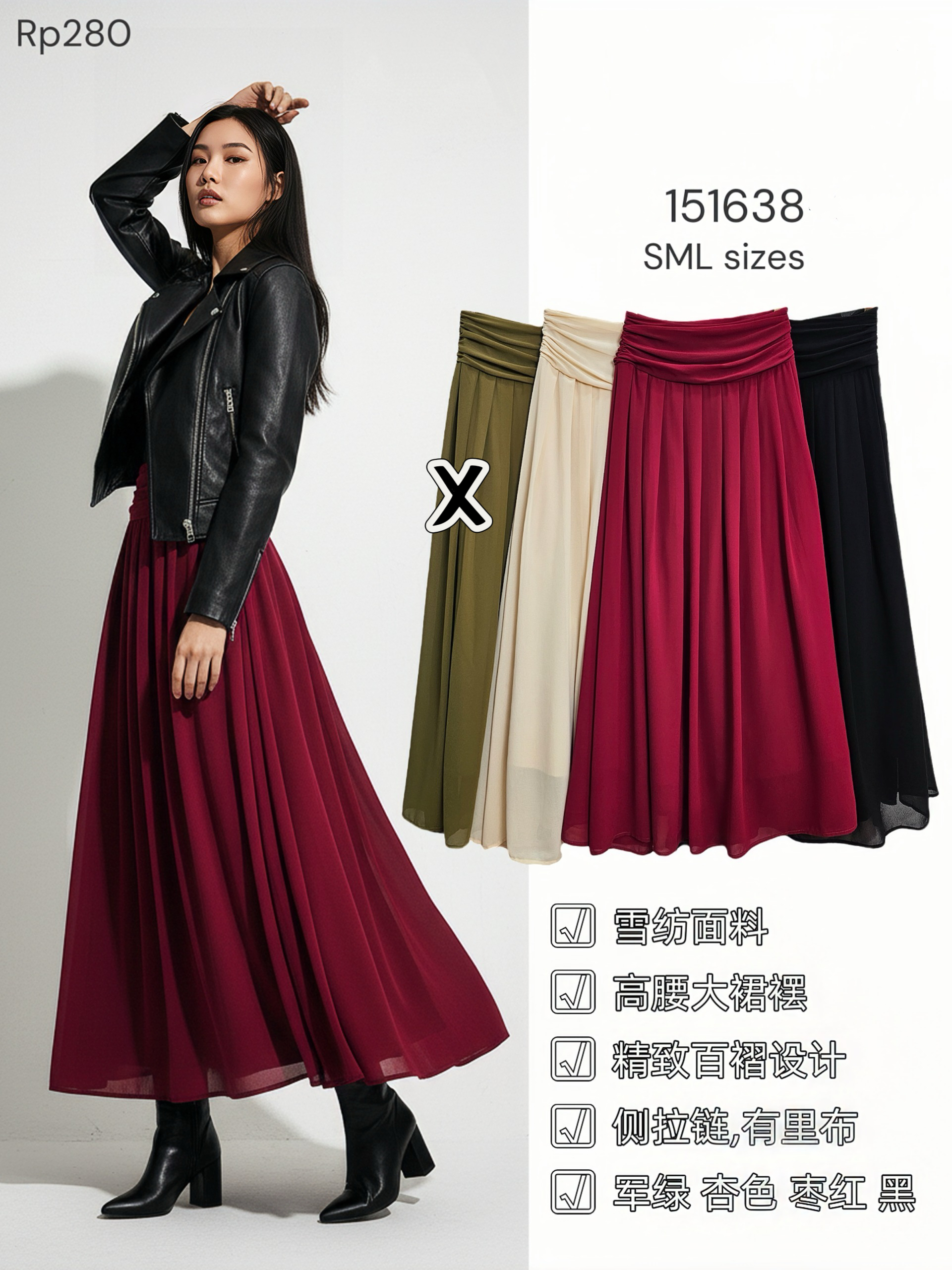 151638 Chiffon Long Skirt 雪纺大摆裙