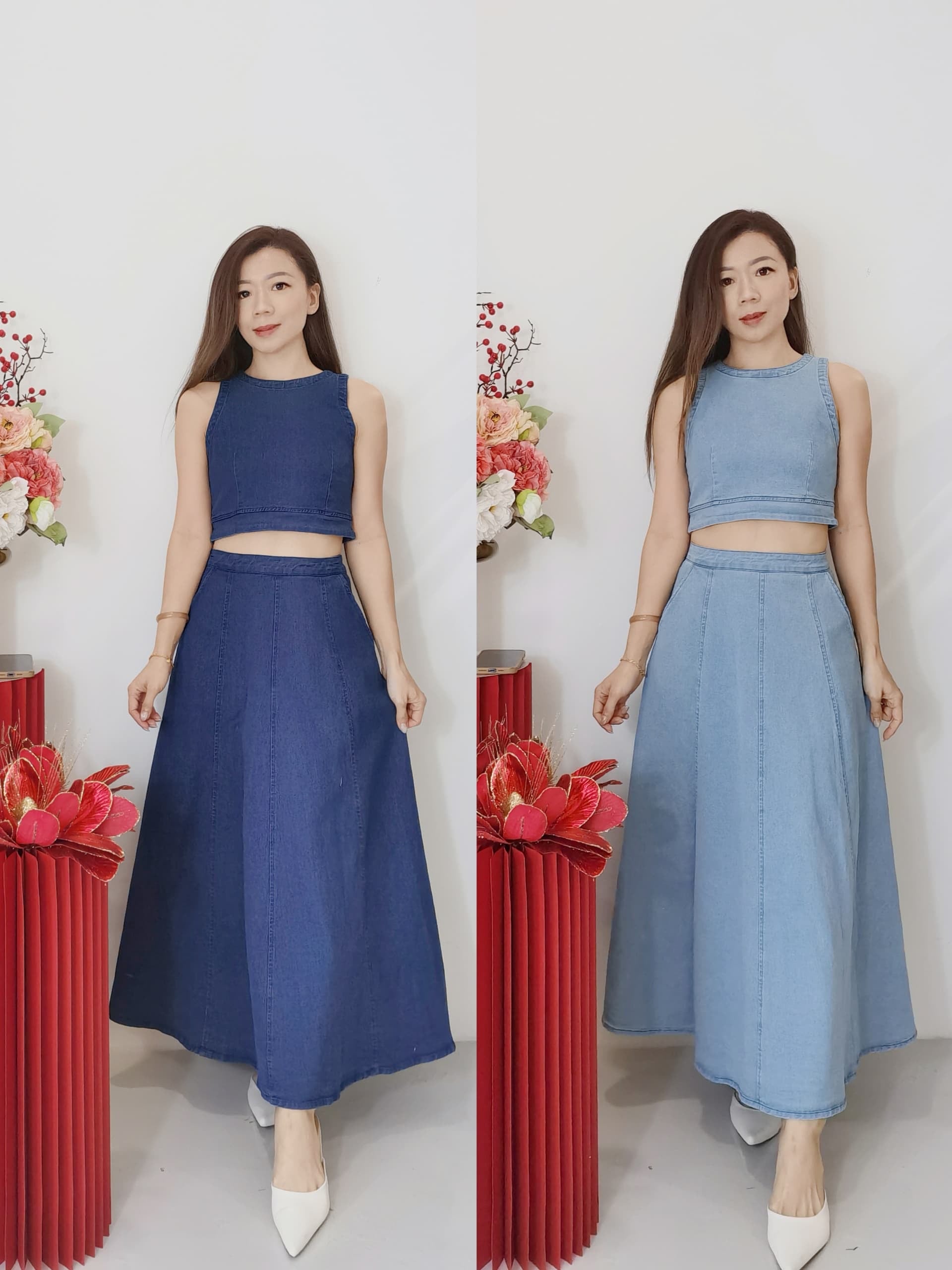 新品推荐✨🧧 21767 PREMIUM JEANS LONG DRESS SET 高级感气质长裙牛仔套装