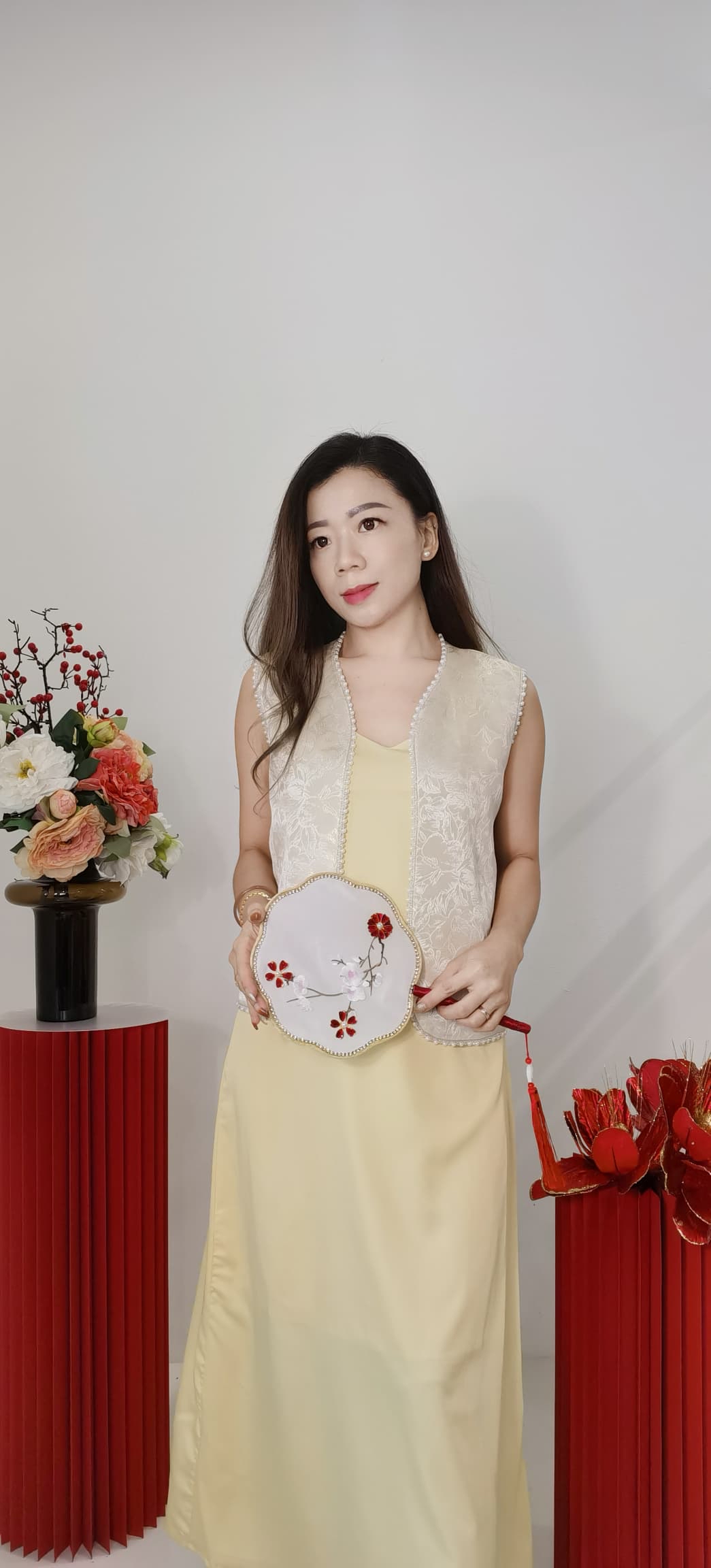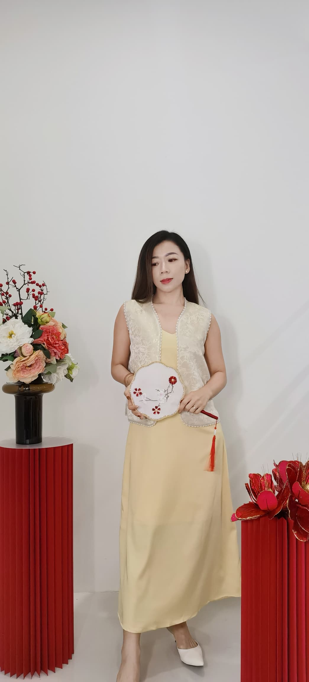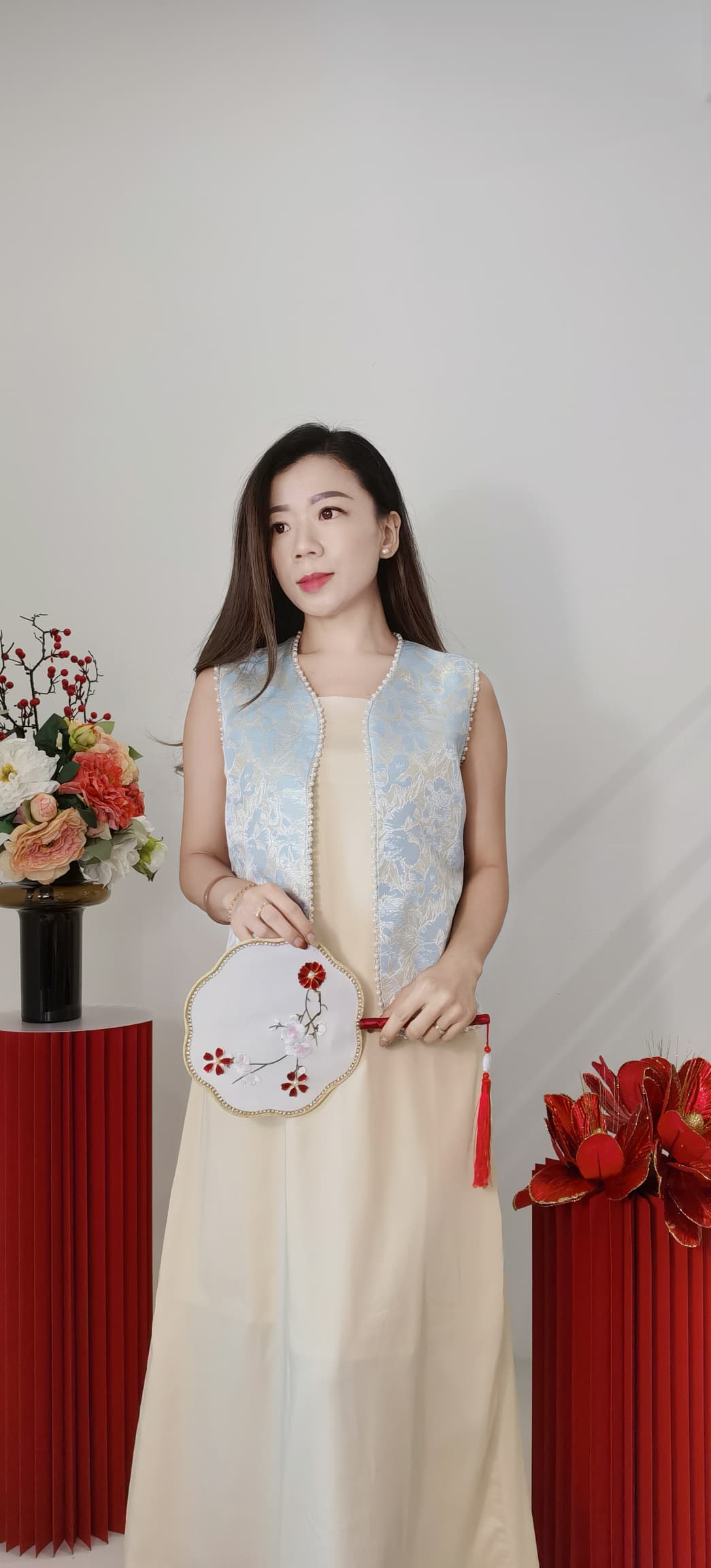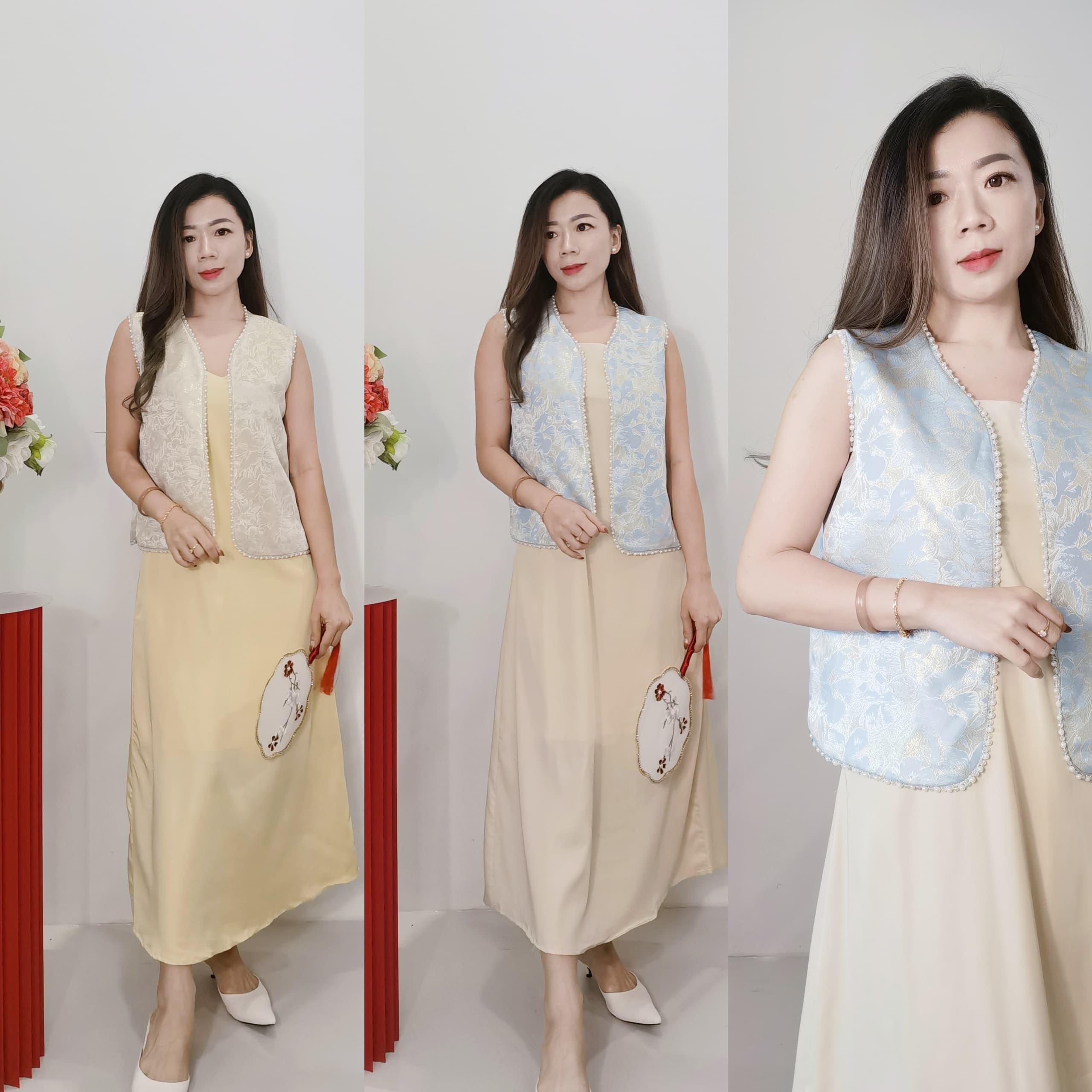 21803 CNY 高定新中式两件连衣裙马甲套装
