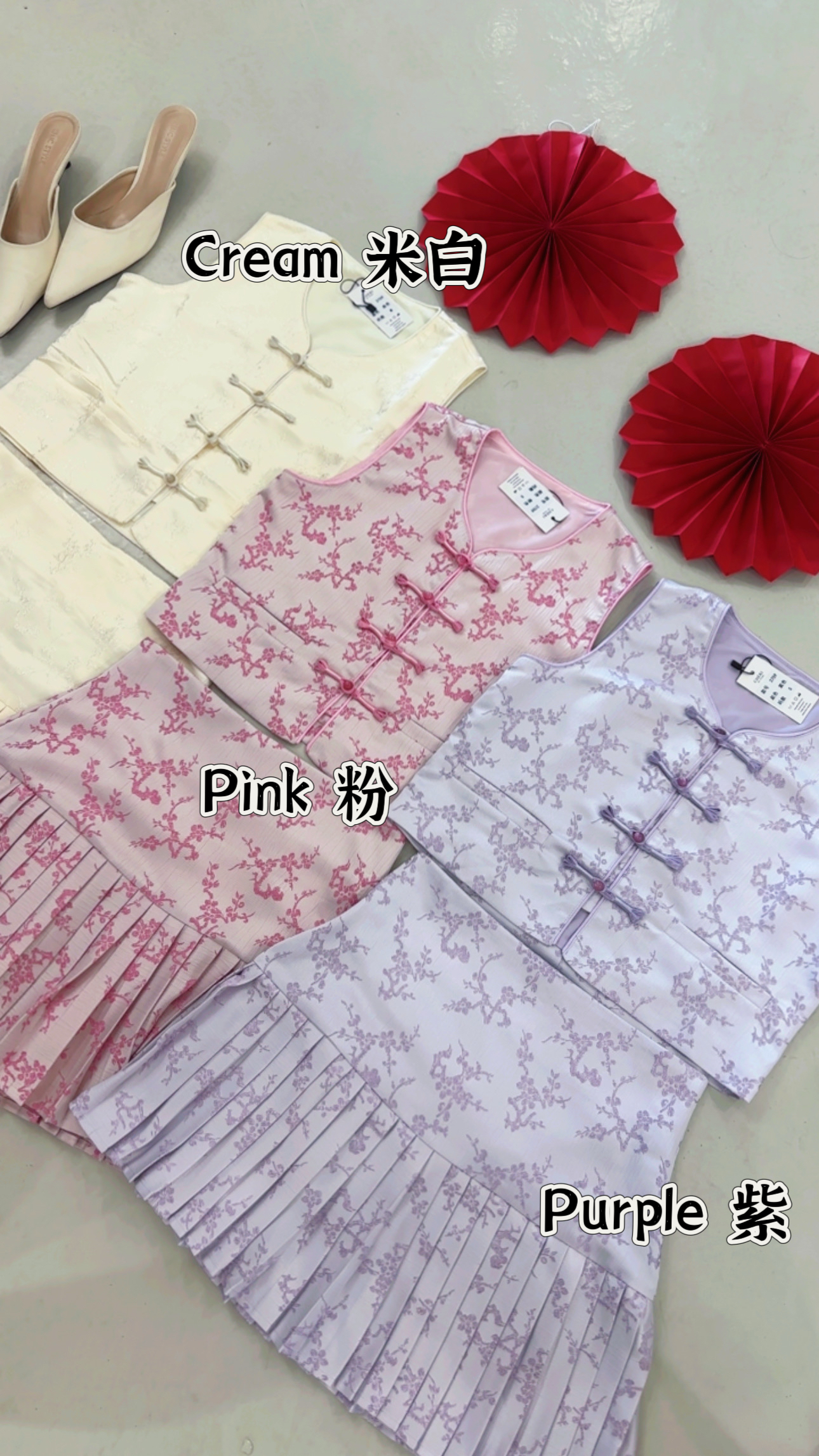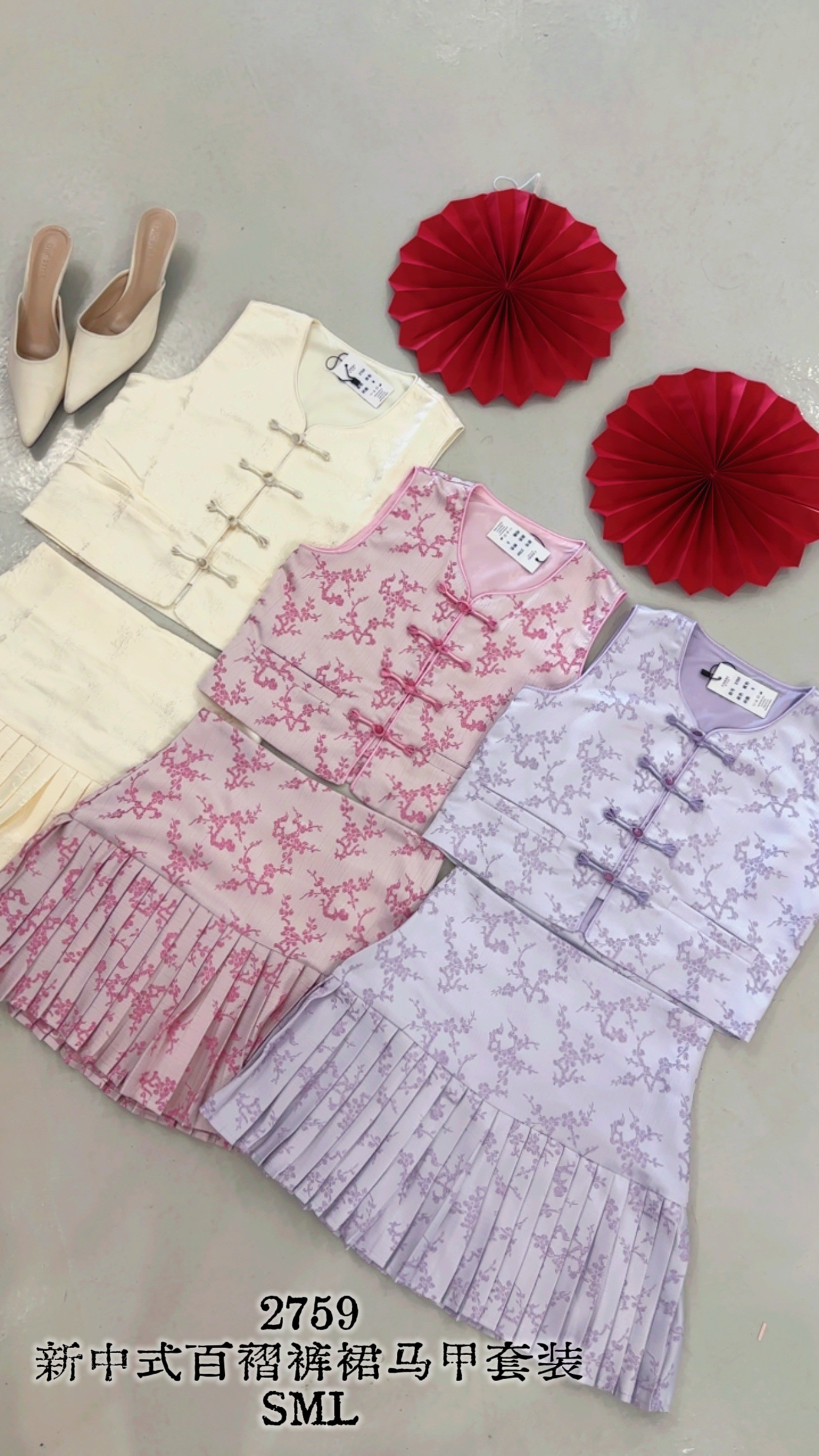 2759 CNY SET 新中式百褶裤裙马甲套装