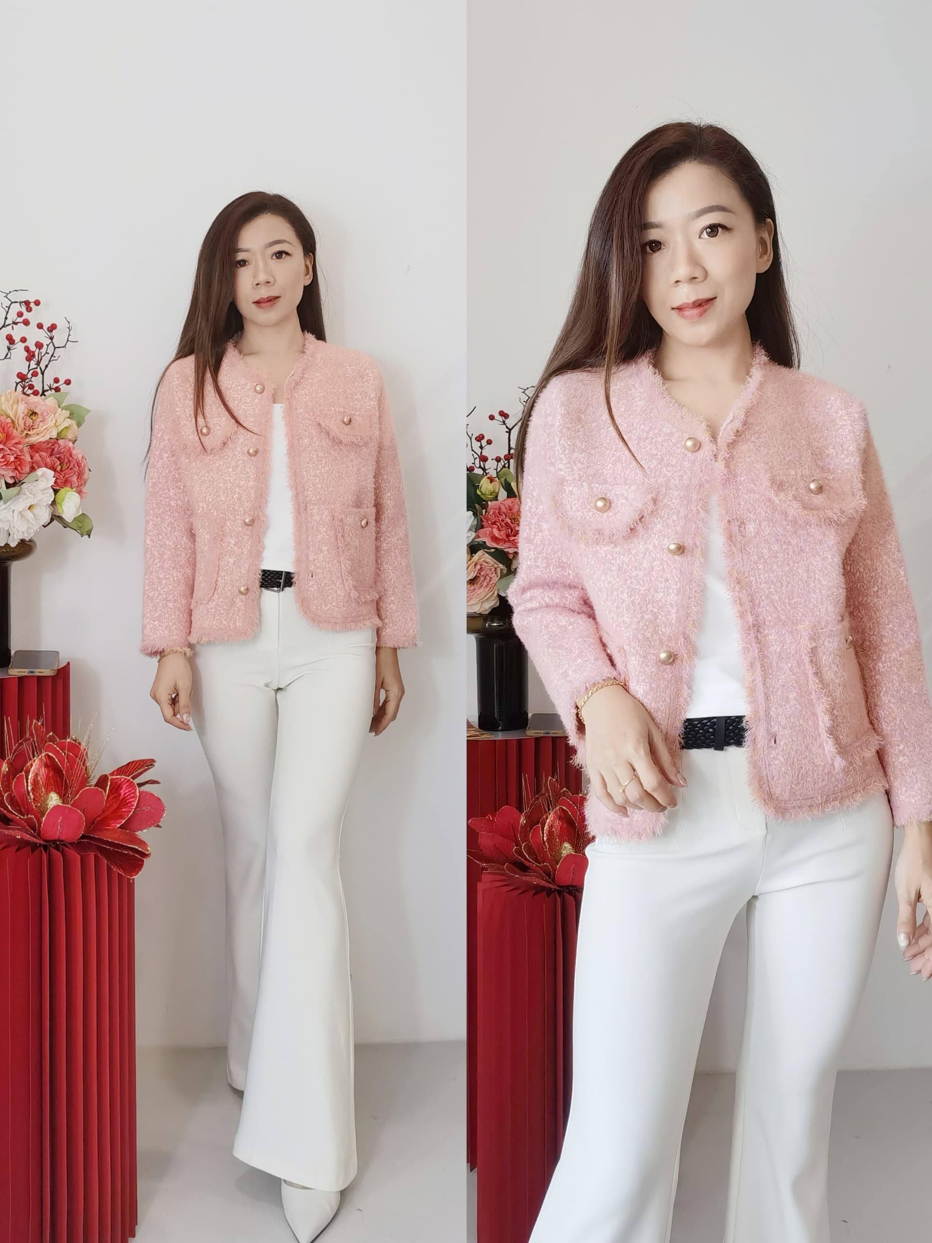 这款外套超级漂亮🤩 新品推荐✨🧧323004 高端毛绒小香风名媛外套 高级品质、非一般面料🤩 特质毛绒面料 、有弹性 、有里布、有保暖作用、 名媛小香款 😍 太美了 颜色:粉 FREESIZE 胸围 100cm 长50cm 博主平时是S,供大家参考。