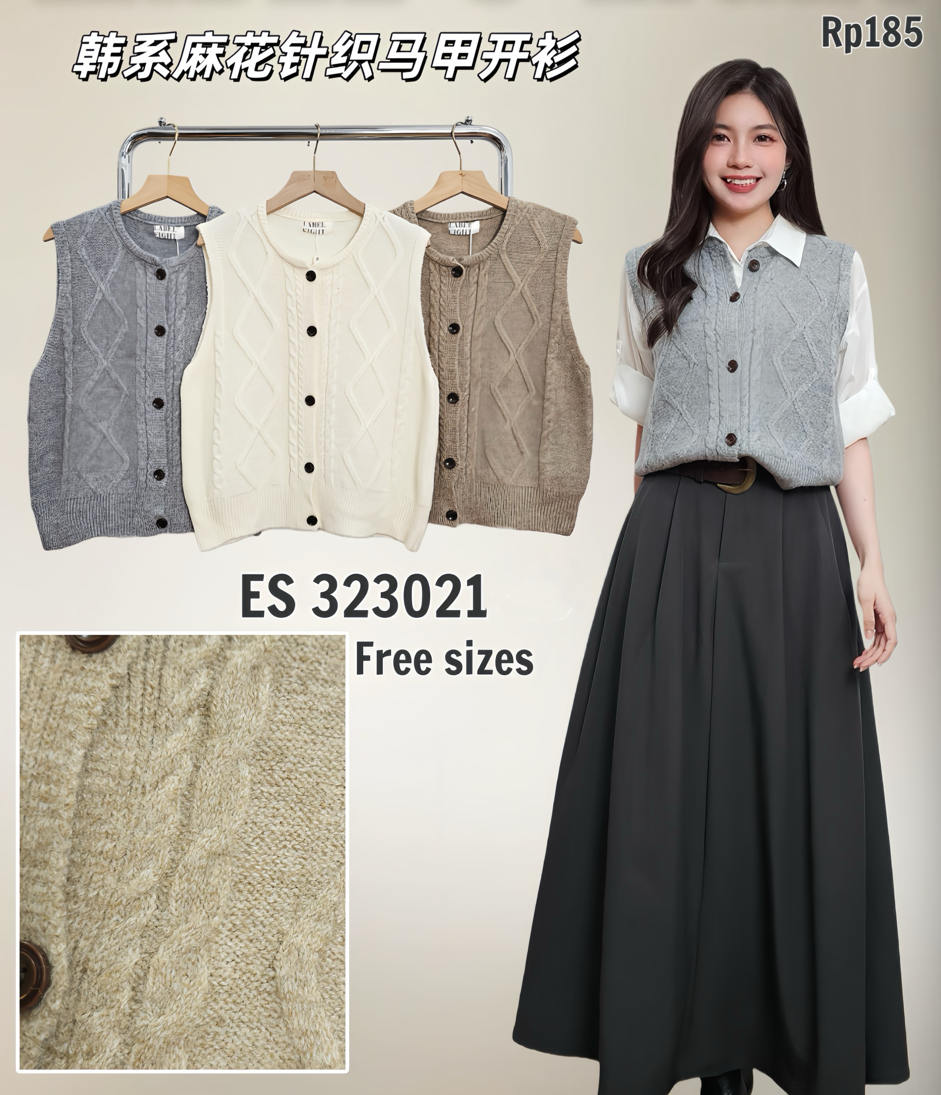 新品推荐✨🧧323021 韩系麻花针织马甲开衫上衣 优质针织面料、弹性大、麻花立体图! 颜色:灰、米白、卡其 FREESIZE 胸围 92cm 长50cm 博主平时是S,此款穿S宽松舒服的,供大家参考。