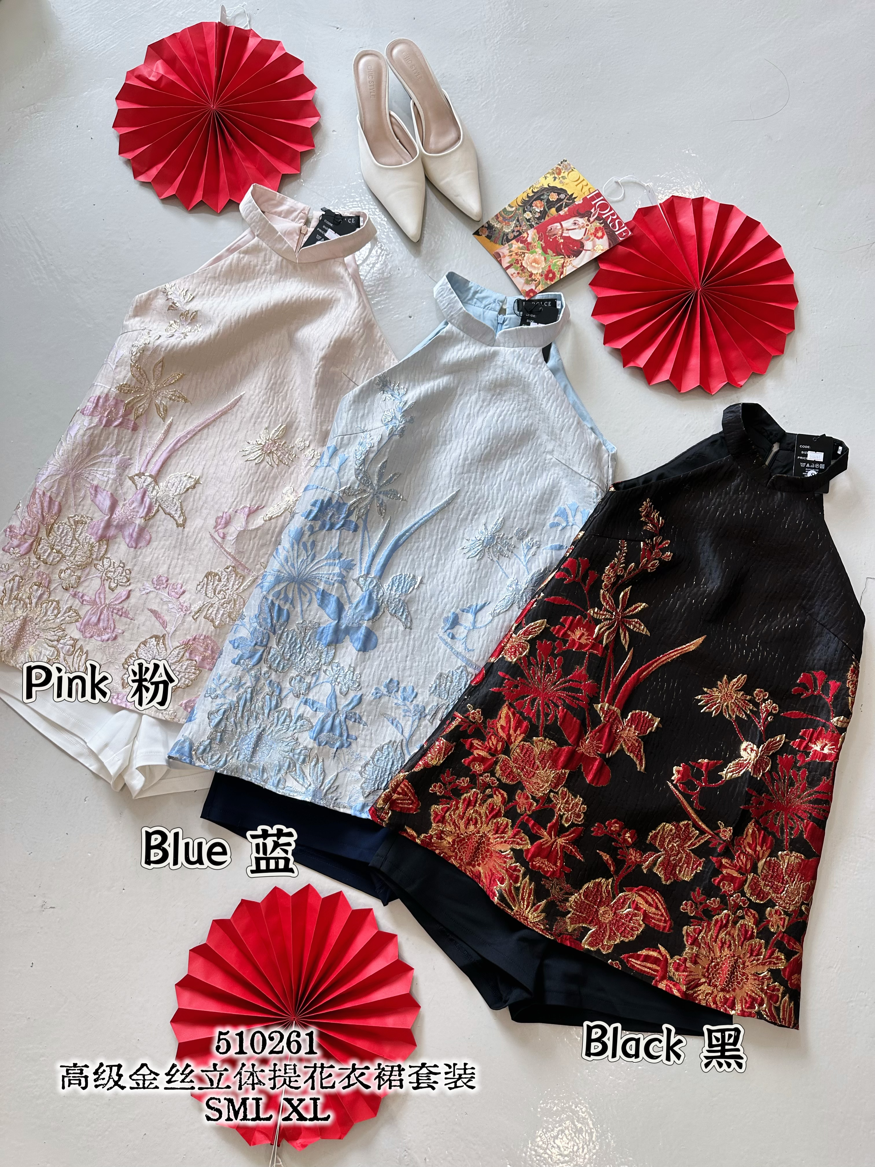 510261 CNY PREMIUM SET 高级金丝提花衣裙套装