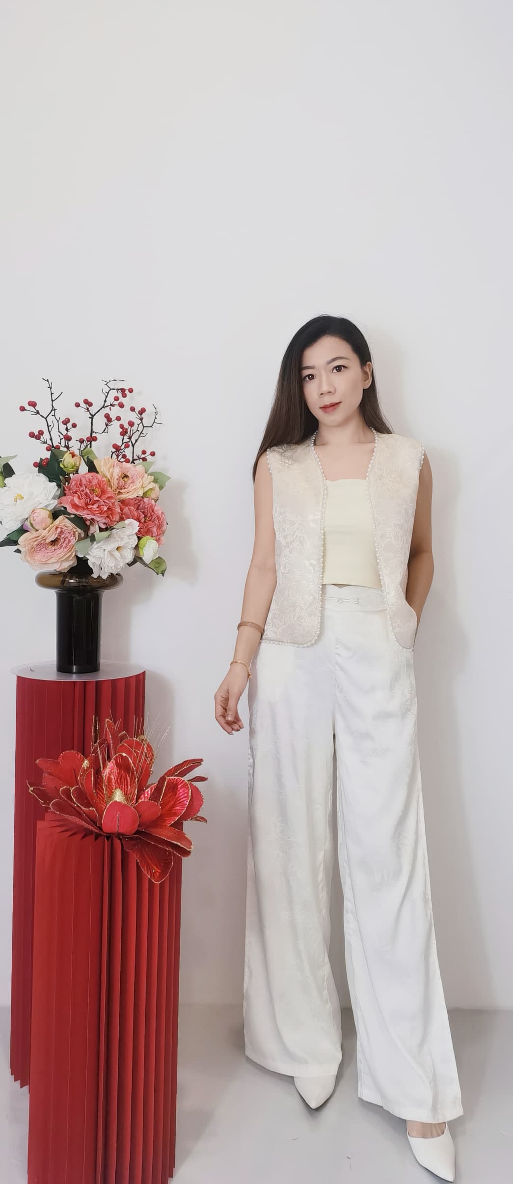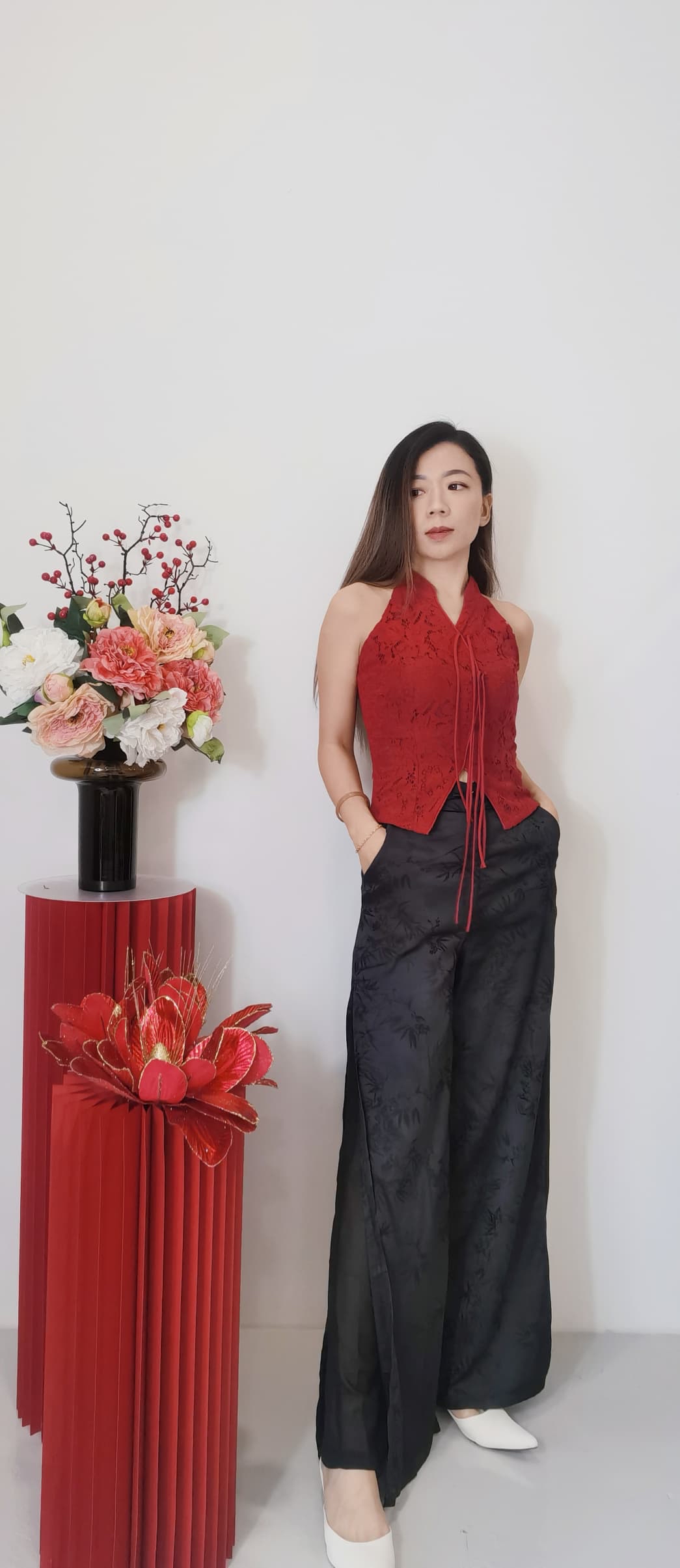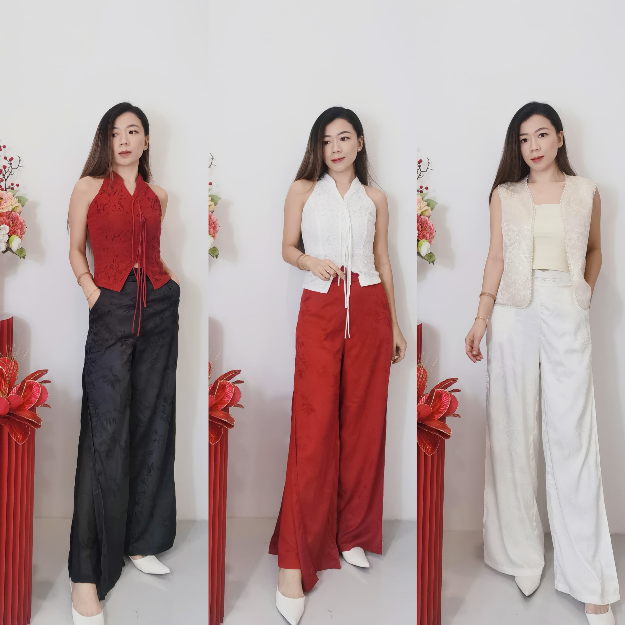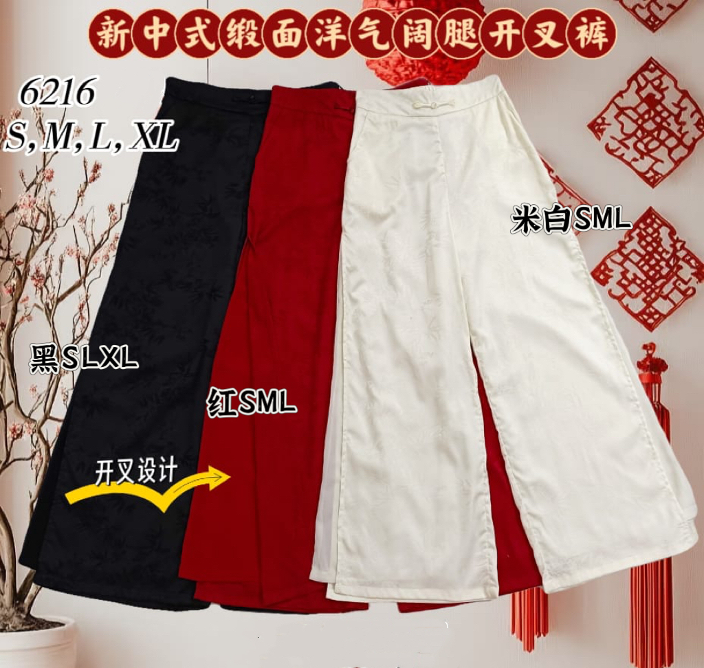 6216 Cheong Sam Long Pant新中式段面气质阔腿开叉长裤