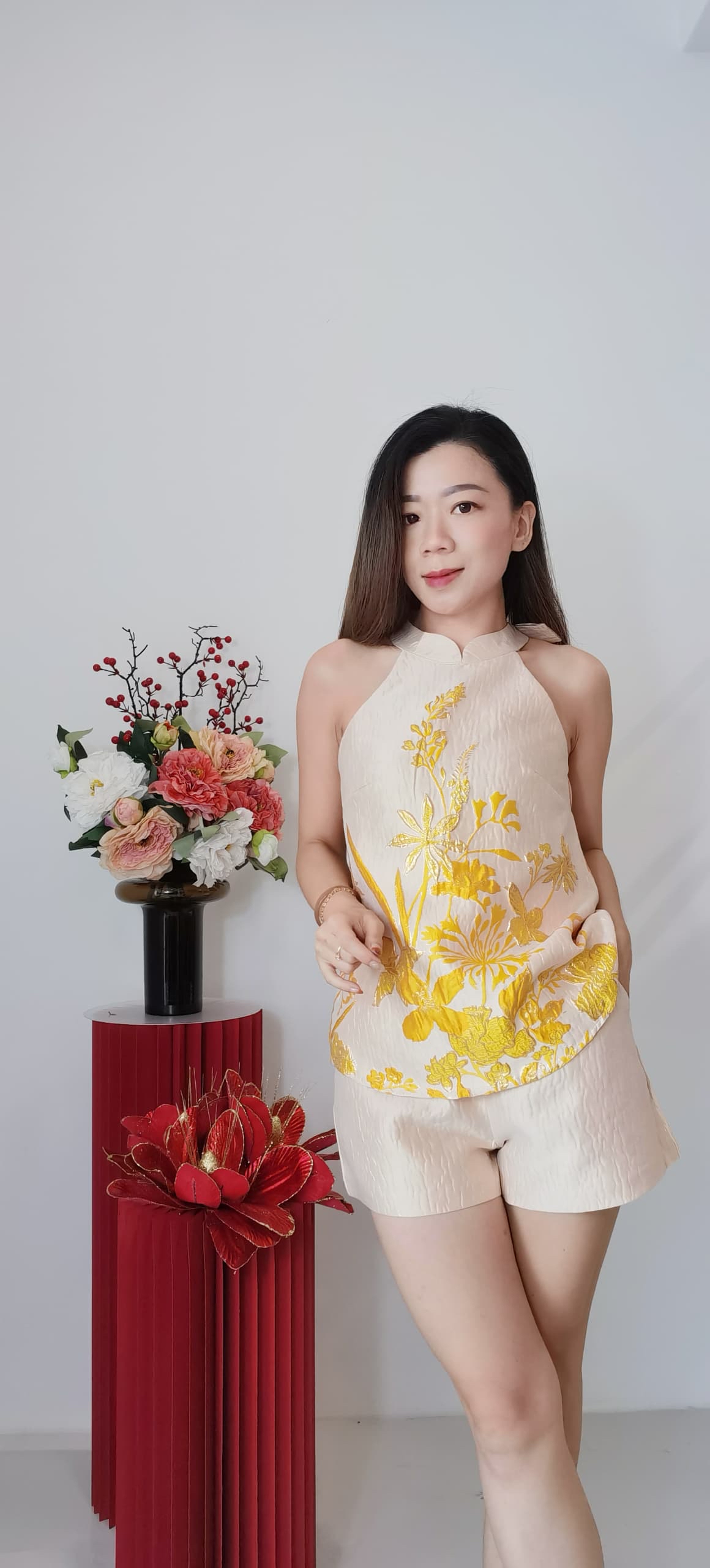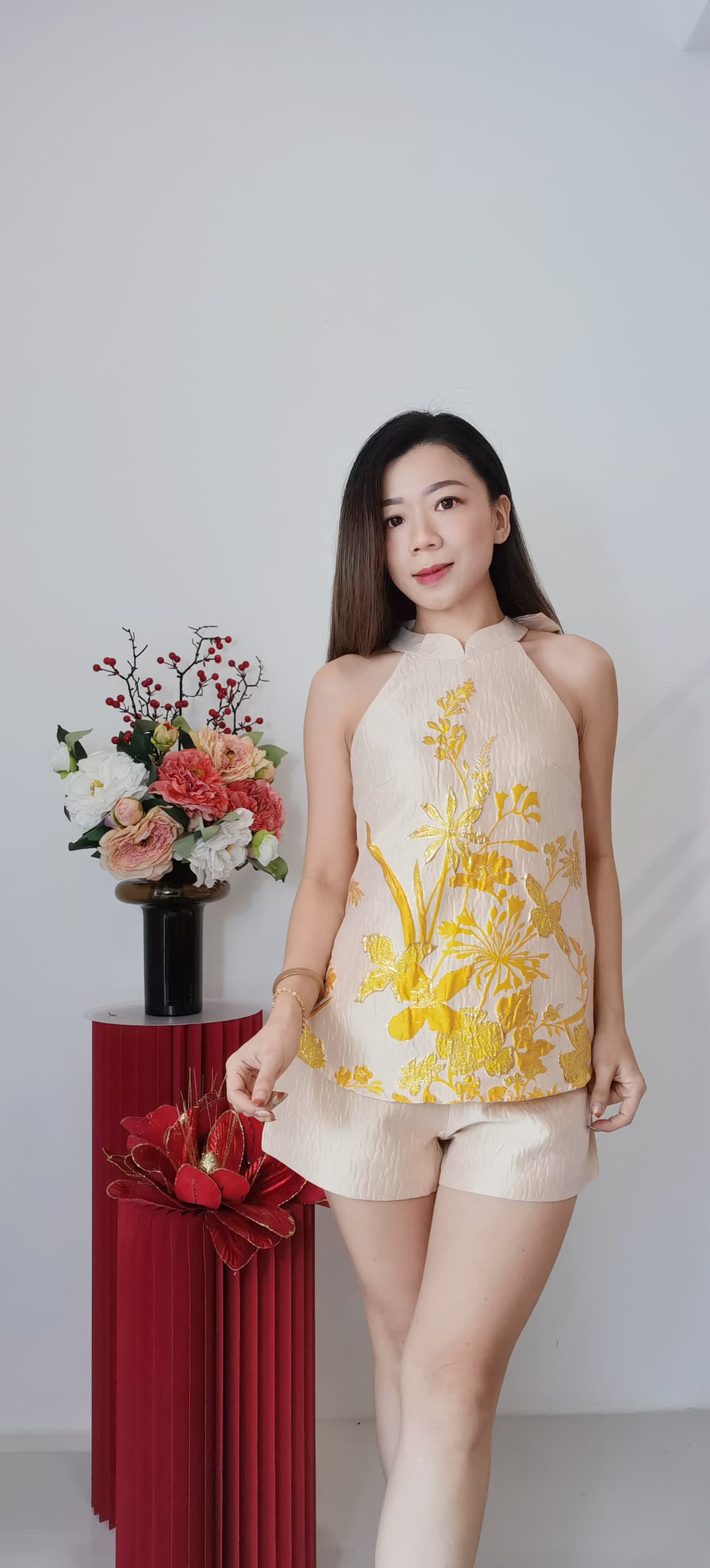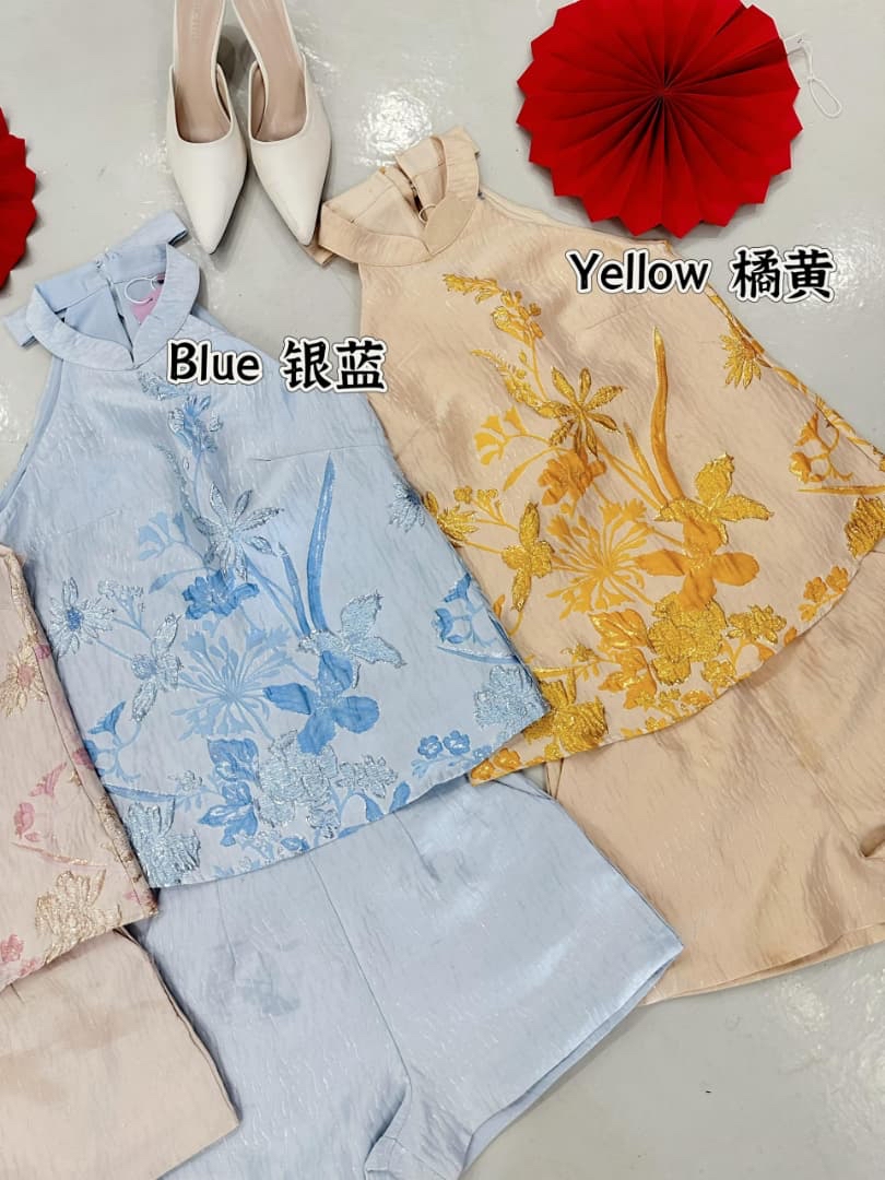 新年爆款 *还有1套黄橘L* ✨🧧62306 高定新中式浮刻提花工艺套装✨ 高级新面料 、无弹性 、有里布、不刺痒、遮肉遮肚腩Aline设计 😘显瘦必备 *正常尺码* L SIZE 胸围 96cm 长46cm 腰围 76cm 臀110cm 长40cm