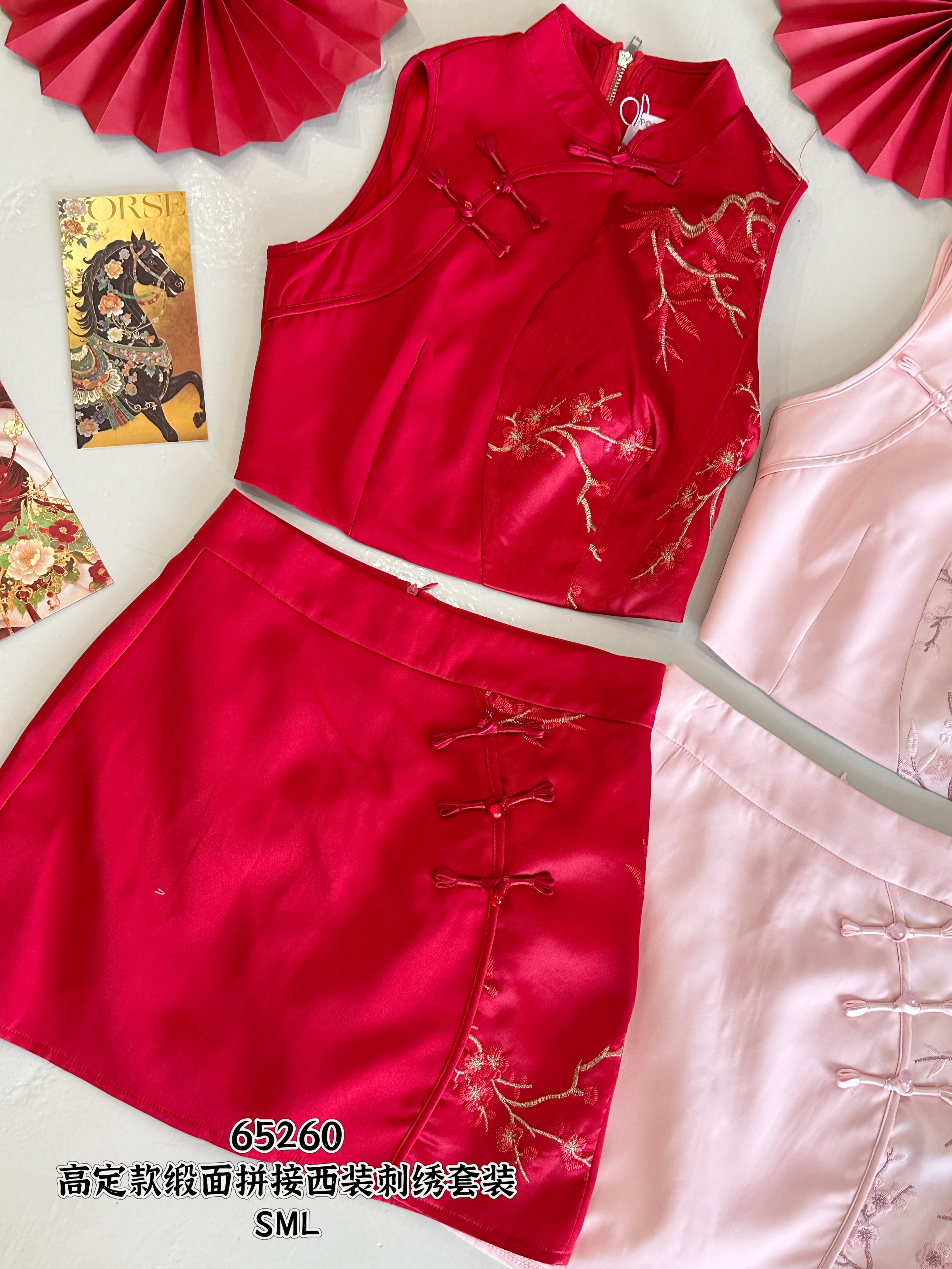 新品推荐✨🧧 65260 CNY PREMIUM DRESS SET 高定款缎面拼接西装刺绣套装