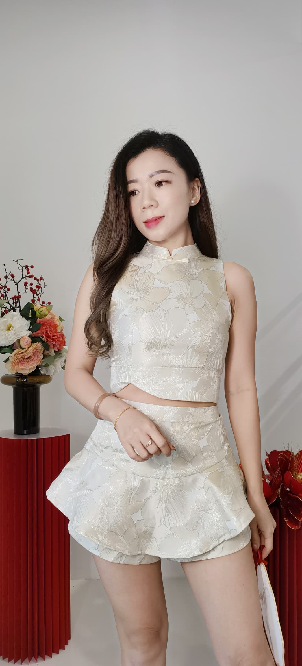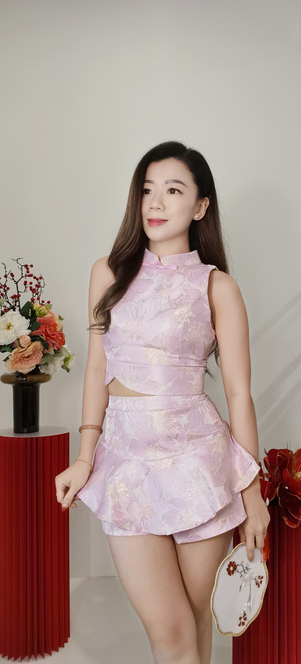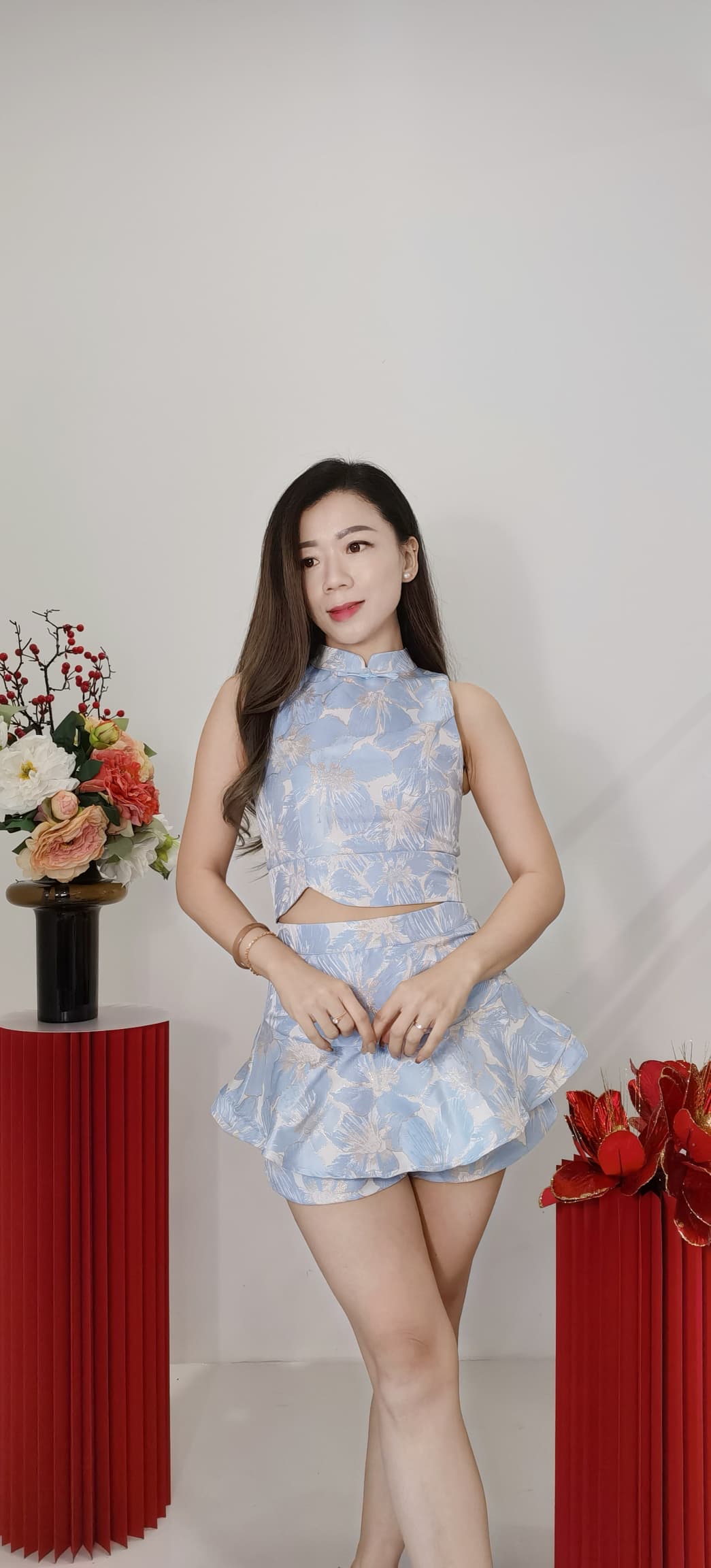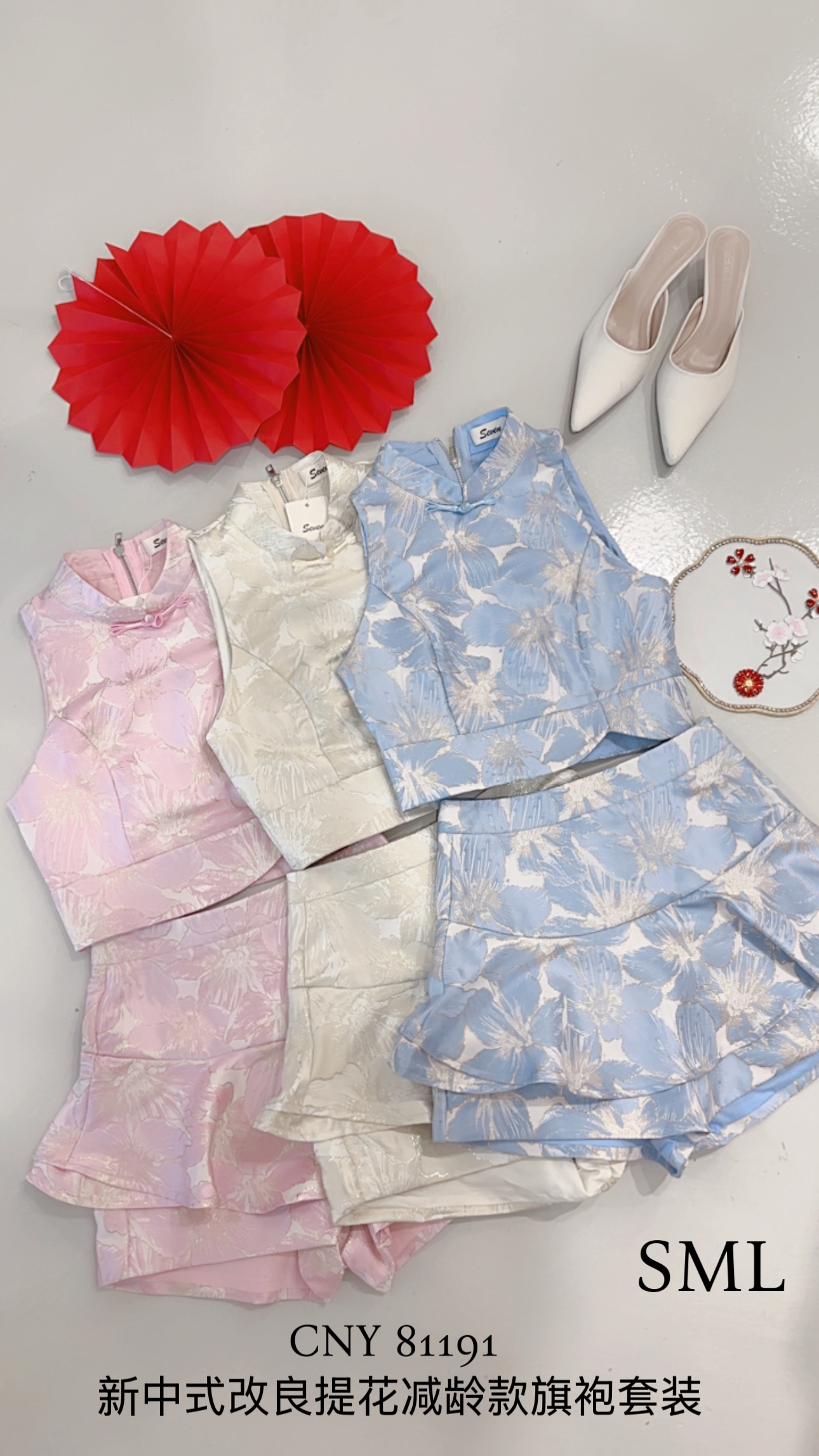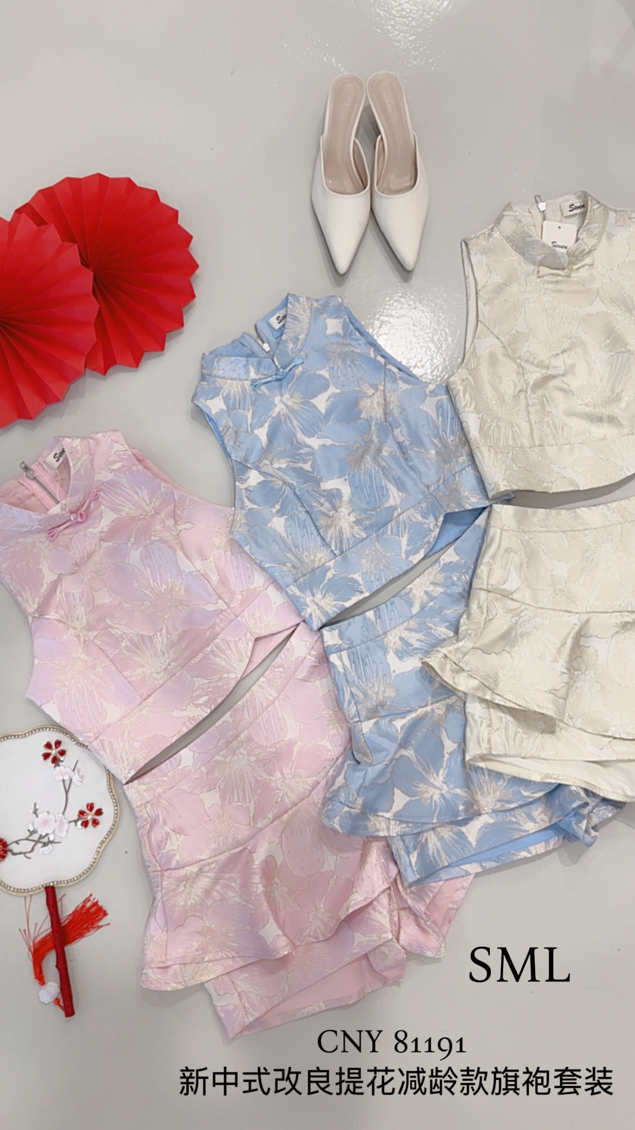 81191 CNY 新中式改良款时尚旗袍套装✨ *太美啦😍* 颜色:蓝、粉、金 📌高定提花烫金布料、 无弹性 、后面拉链、裤裙款 显瘦,减龄又高级 S SIZE 胸围 80-82cm 长40cm 腰围 24-25寸 臀90cm 长33cm M SIZE 胸围 84-86cm 长41cm 腰围 26-27 臀 94cm 长34cm L SIZE 胸围 88-92cm 长42cm 腰围 28-29 臀98cm 长35cm 博主163cm/52kg 平时S 这款穿S FIT 要舒服建议拿大一码 供参考😊