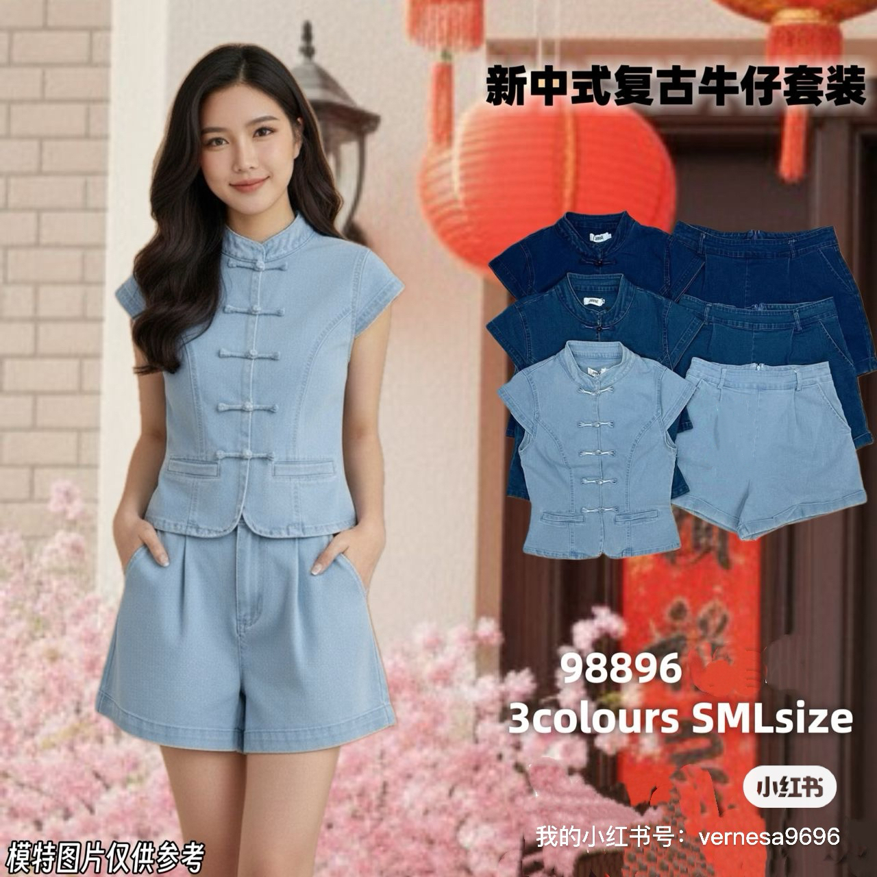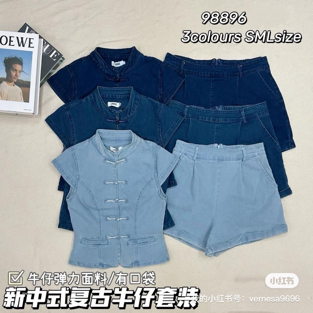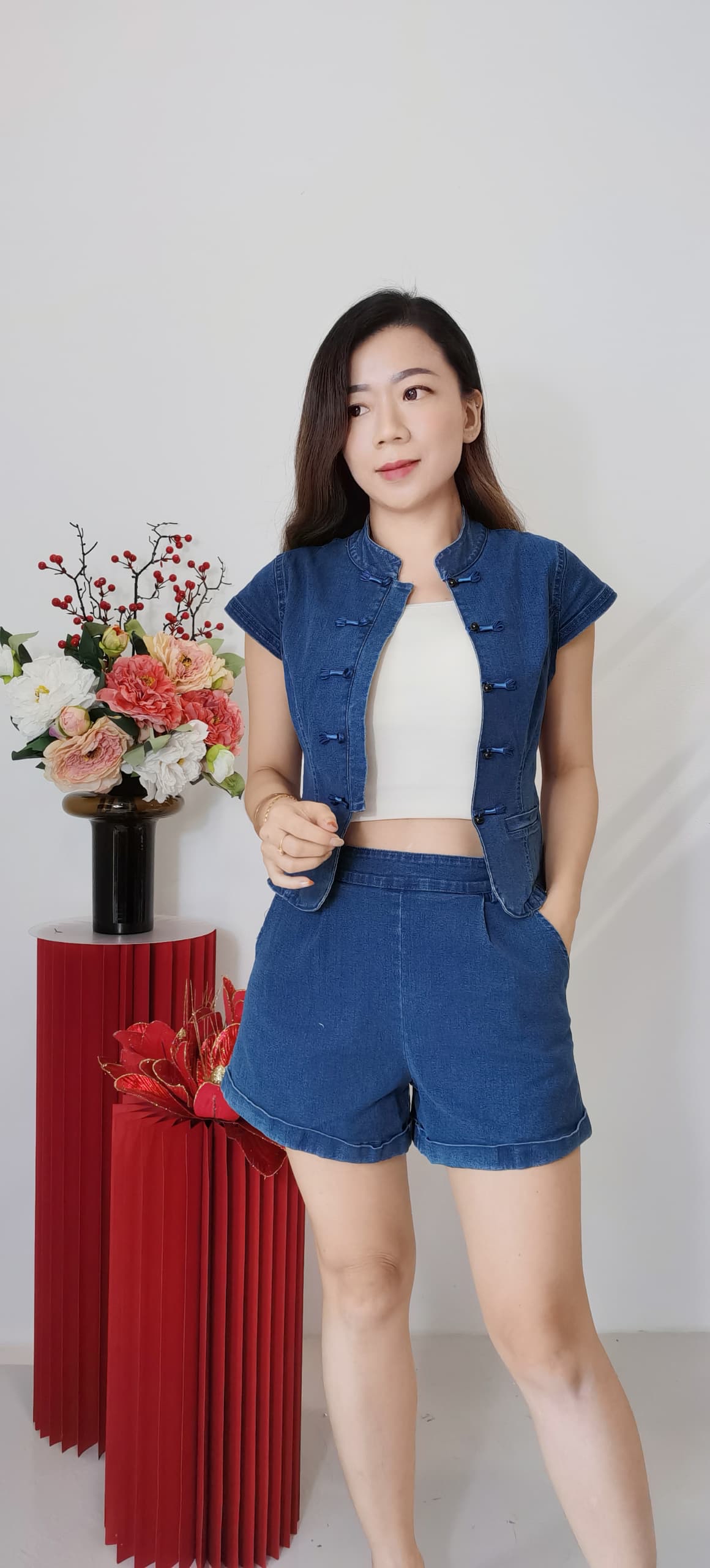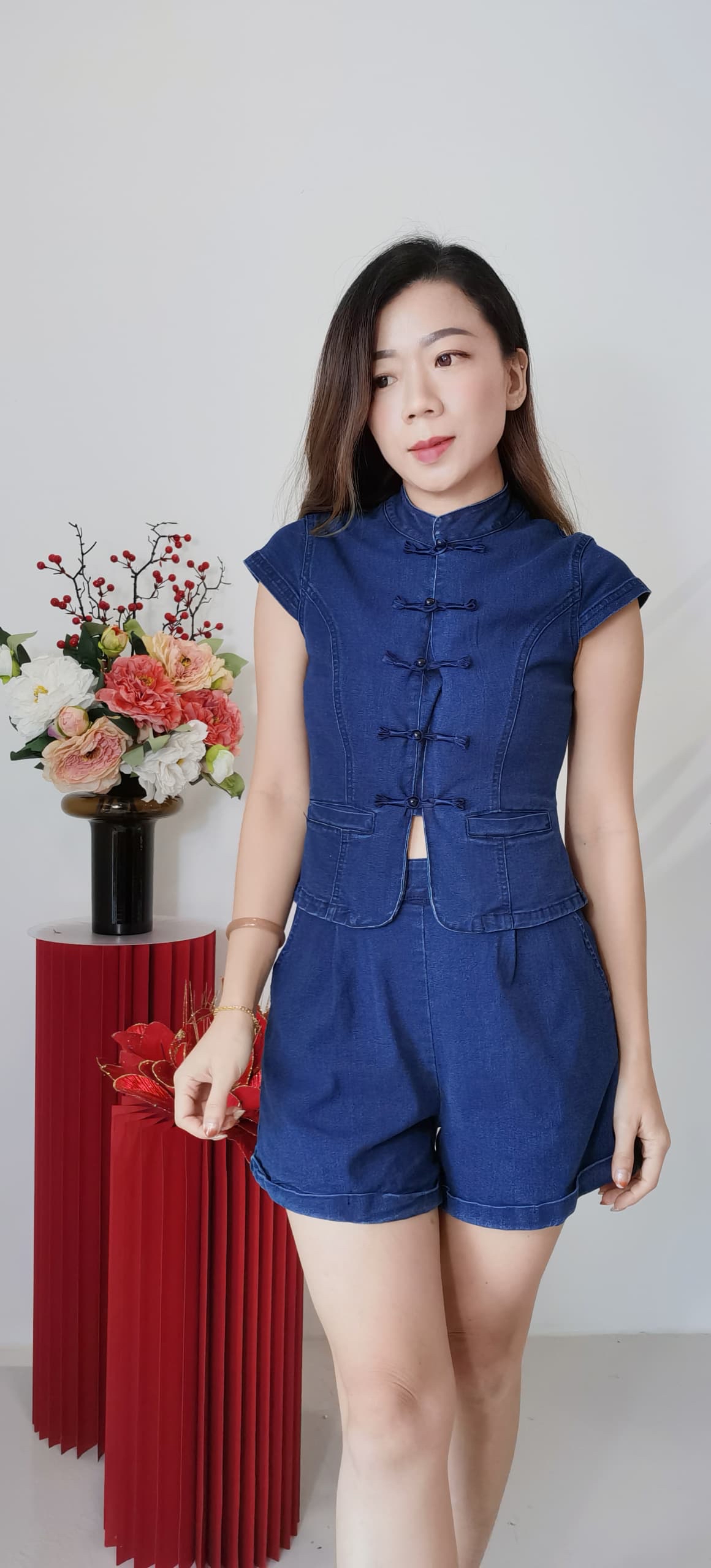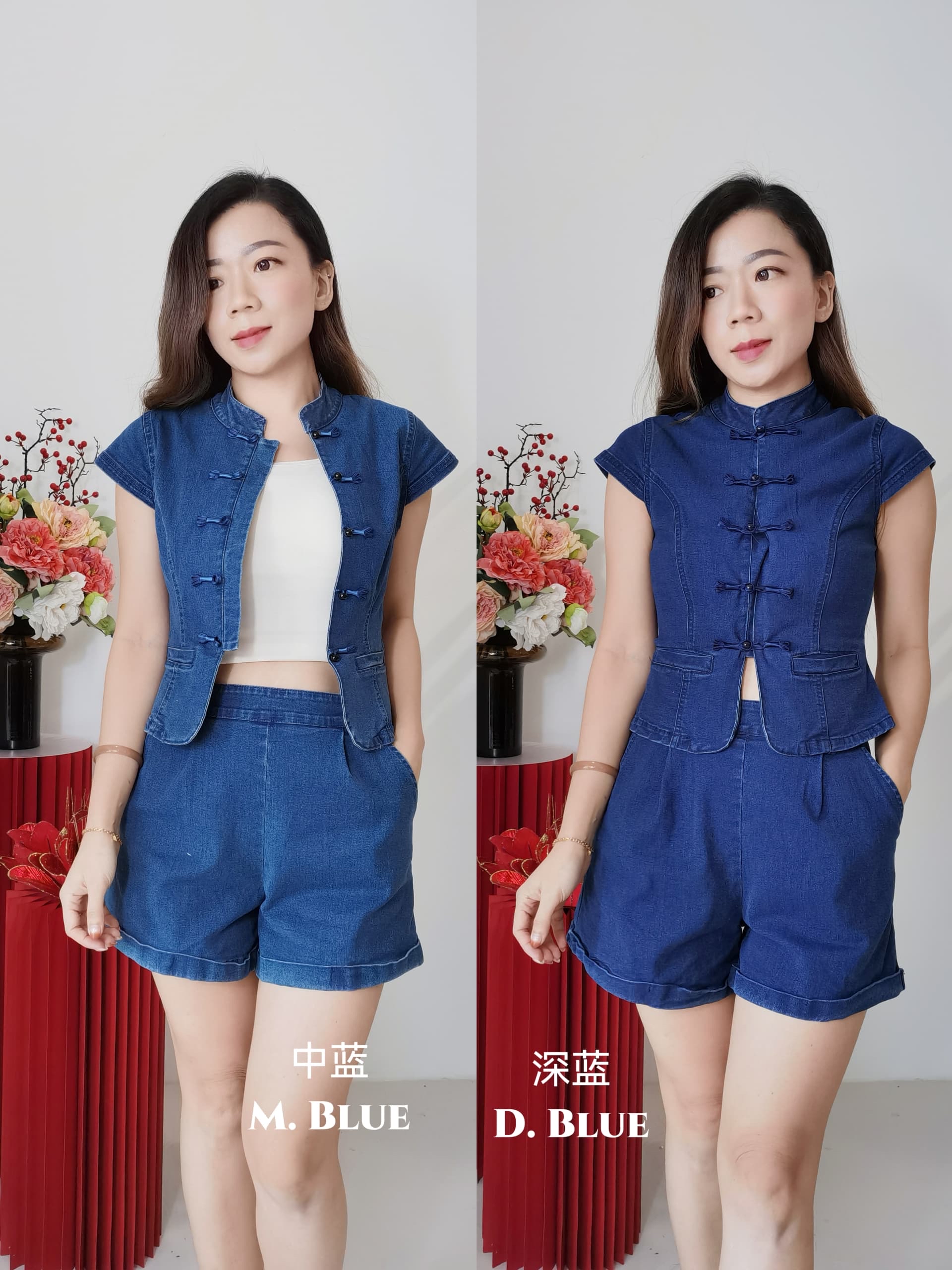 CNY ✨🪭 98896新中式牛仔套装✨ 颜色:浅蓝 、中蓝、深蓝 牛仔面料、有弹力! 根据平时的size下单。 S SIZE 胸围 32寸 腰25-26寸 长46cm 裤子 腰25-26寸 臀 96cm 长34cm M SIZE 胸围 34寸 腰27-28寸 长47cm 裤子 腰27-28寸 臀 100cm 长35cm L SIZE 完了❗️