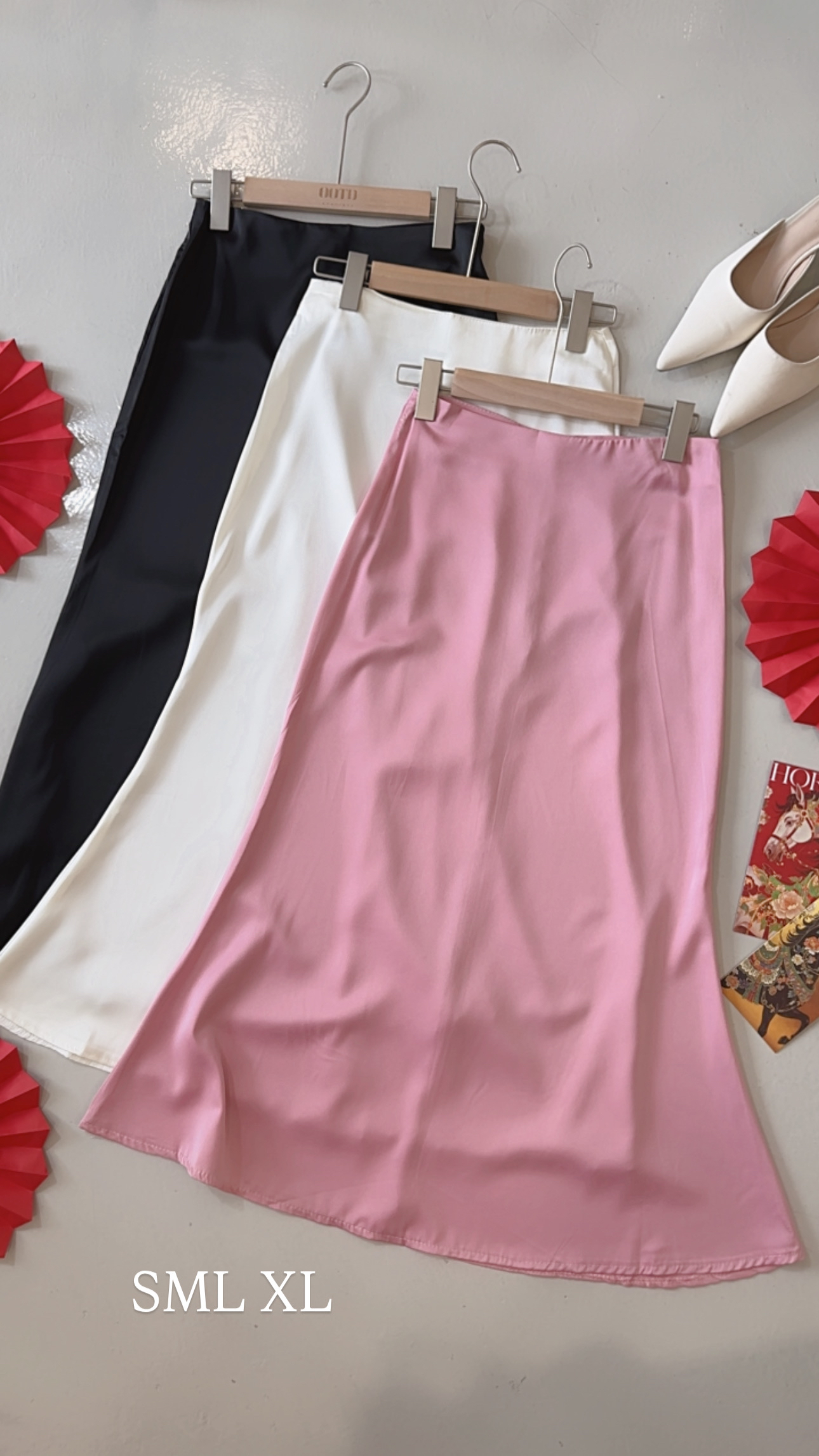 新品推品✨P237 SATIN SKIRT缎面鱼尾裙子 缎面面料、微微弹性、后面隐形拉链 搭配新中式绝美啊😍 *颜色:黑、粉、米白* SSIZE 腰围 25-26寸 臀部 88cm 长87cm M SIZE 腰围 27-28寸 臀部 92cm 长88cm L SIZE 腰围 29-30寸 臀部 96cm 长89cm XL SIZE 腰围 31-32寸 臀部 100cm 长90cm 博主平时是S码, 此款穿着刚好,供大家参考☺️